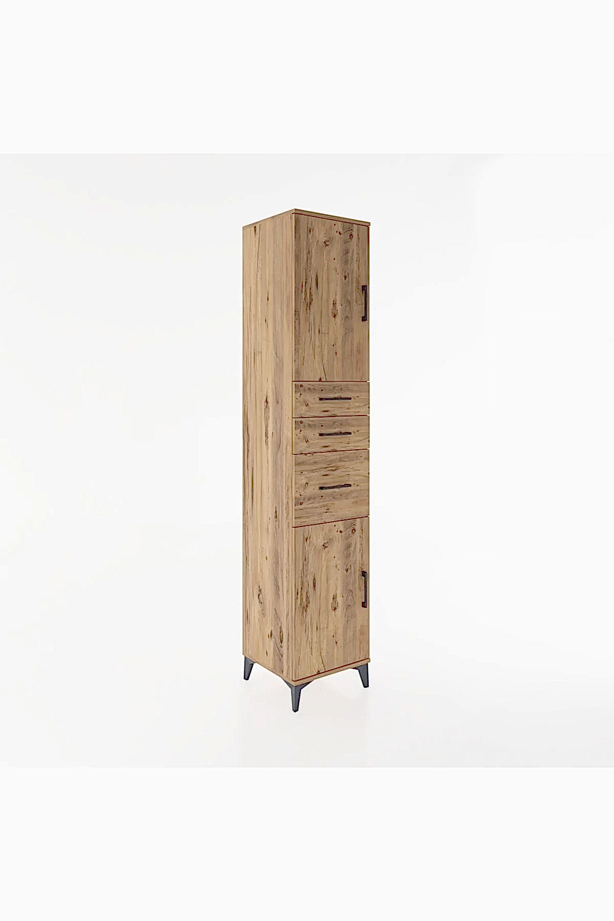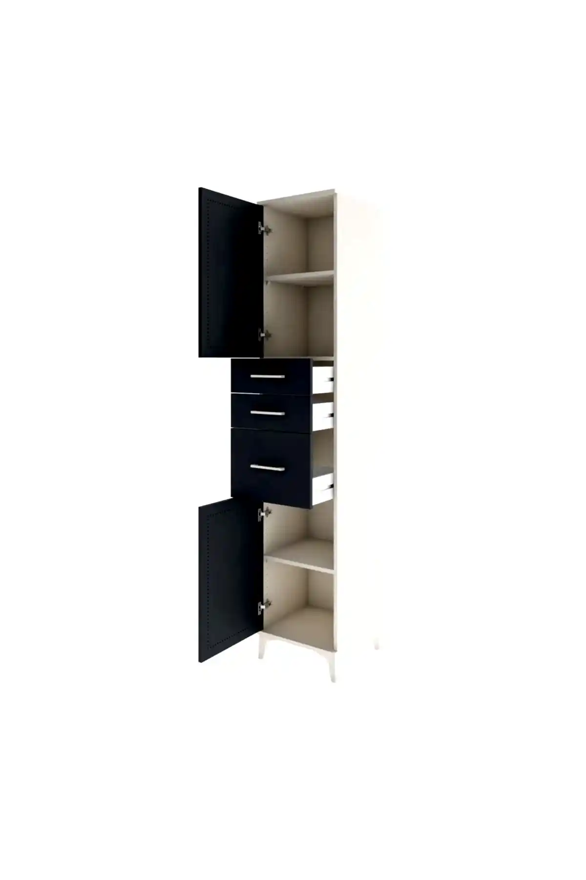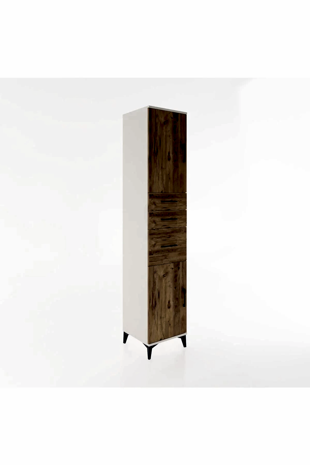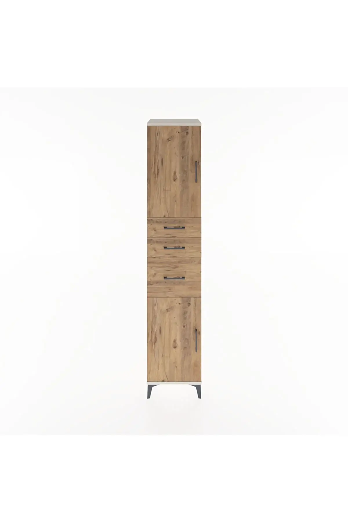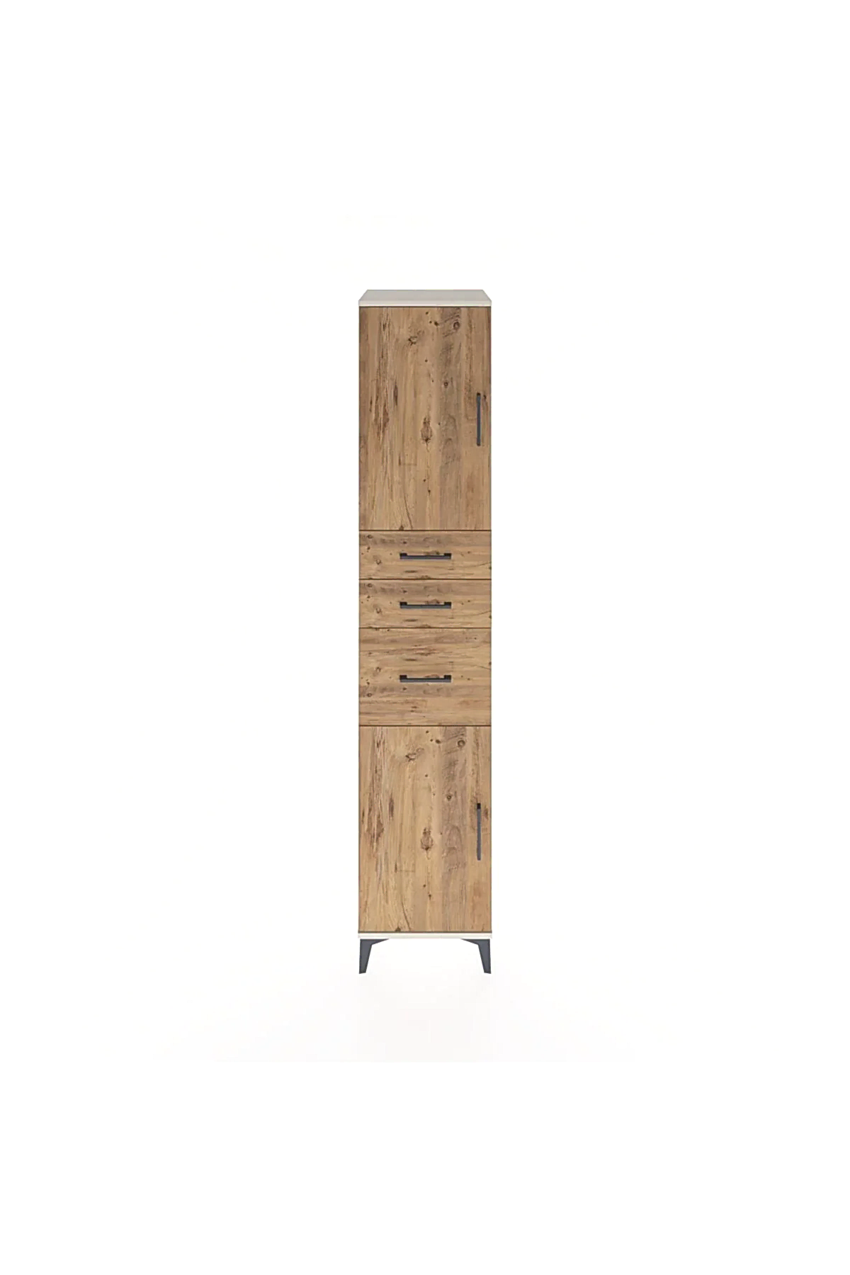🦾 Metal ayaklar, dolaba modern bir hava katarken, zeminden yüksekliği sayesinde temizliği kolaylaştırır. Metal kulplar, dolabın şık tasarımını tamamlar ve kullanım kolaylığı sunar.