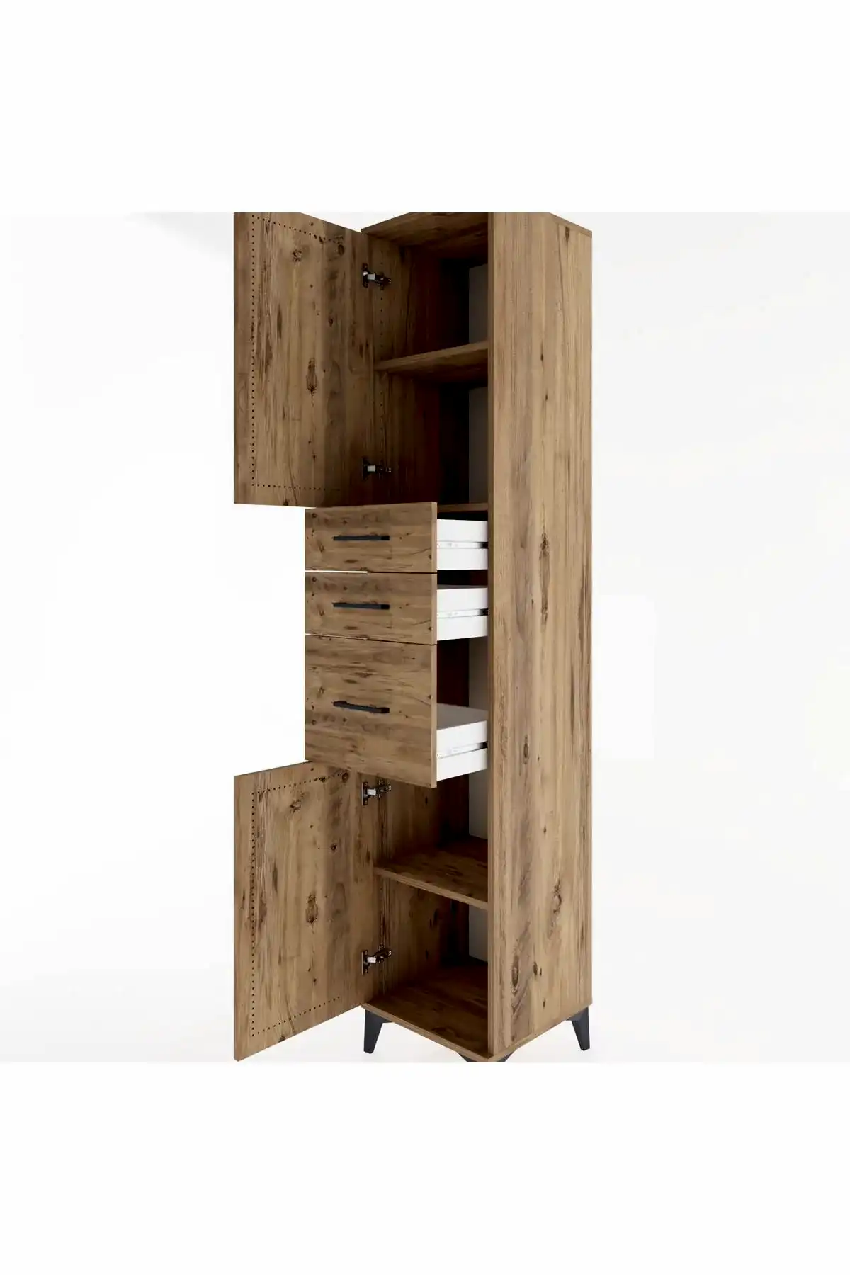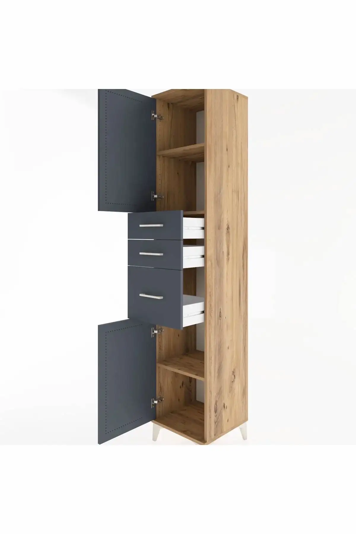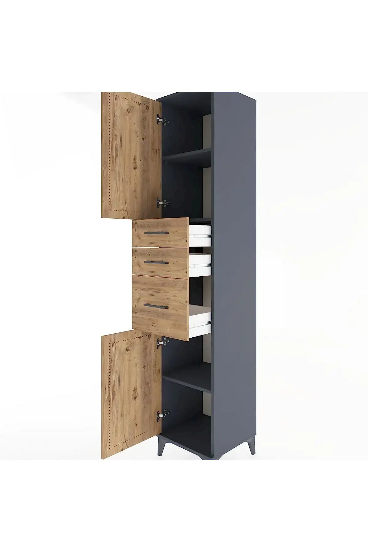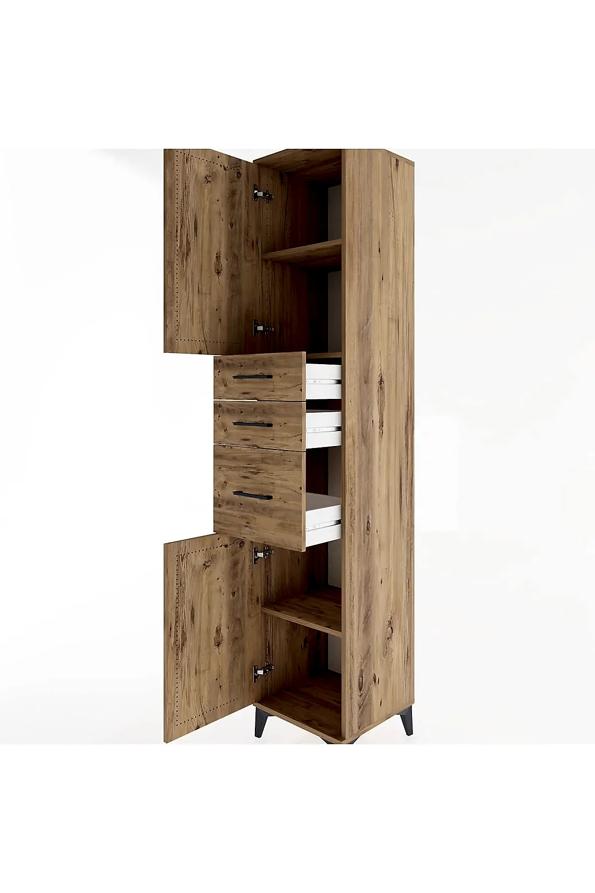 📌 Hyperion Dolap 3 Raflı 3 Çekmeceli 2 Kapaklı 44x44x221