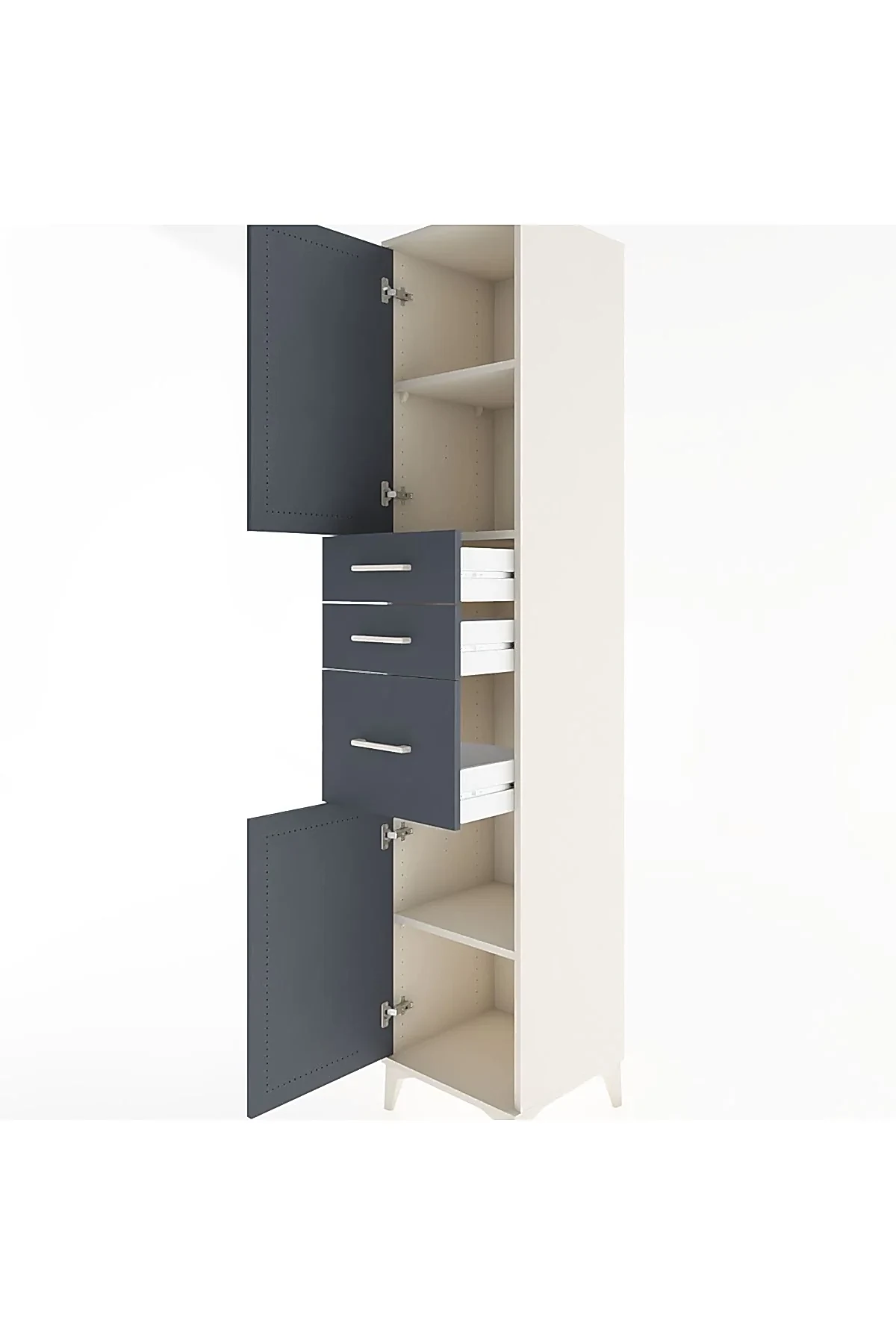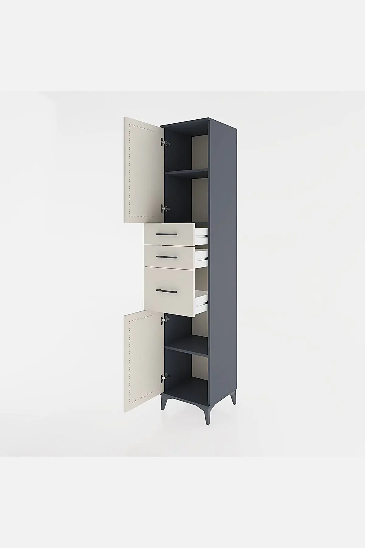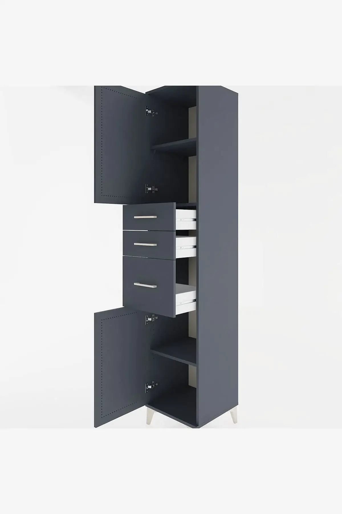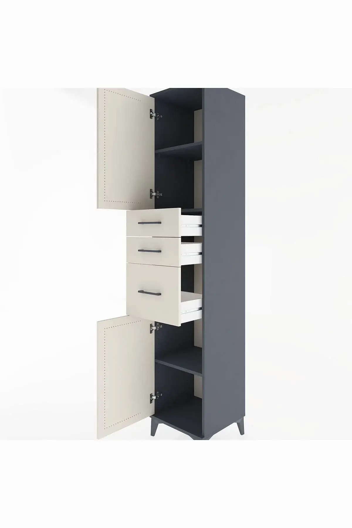📌 Hyperion Dolap 3 Raflı 3 Çekmeceli 2 Kapaklı 44x44x221