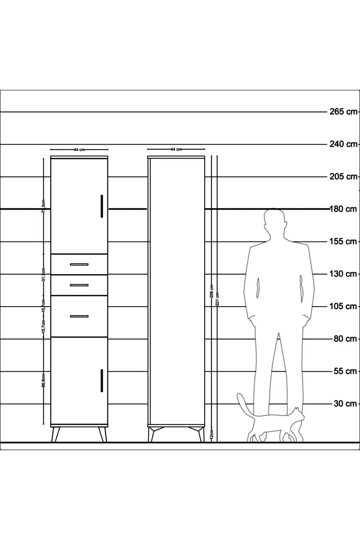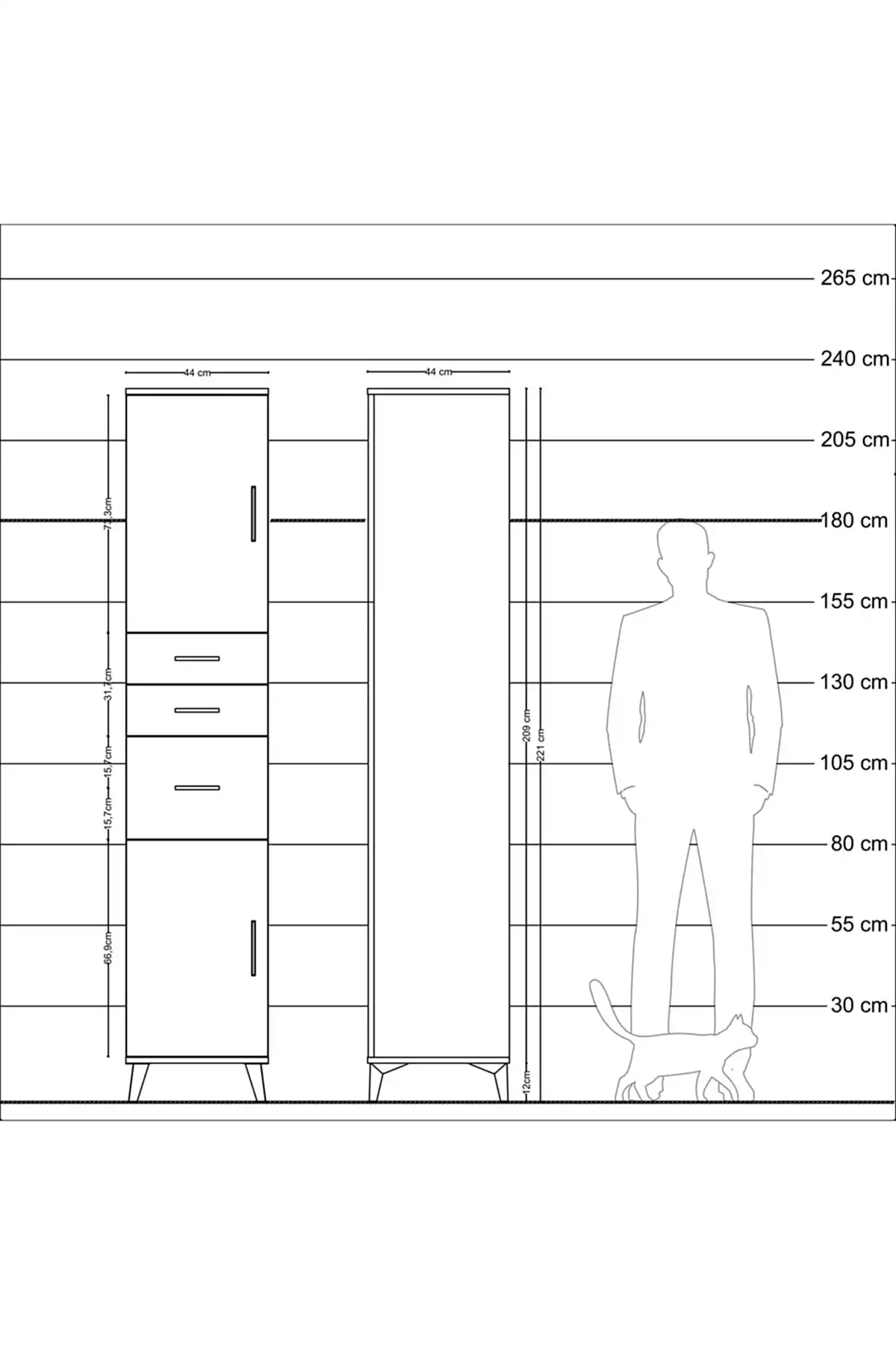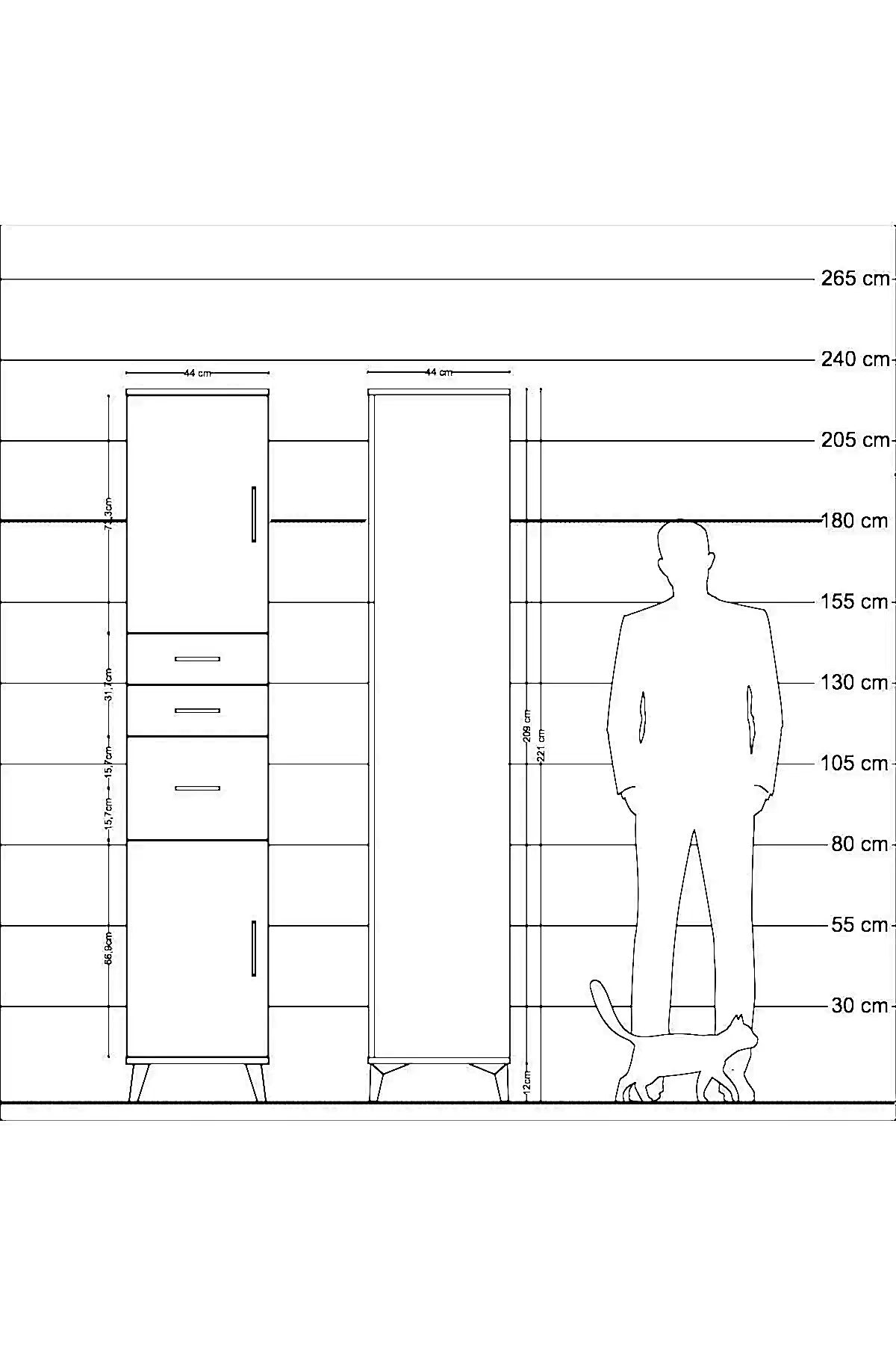 - Yükseklik: 221 cm