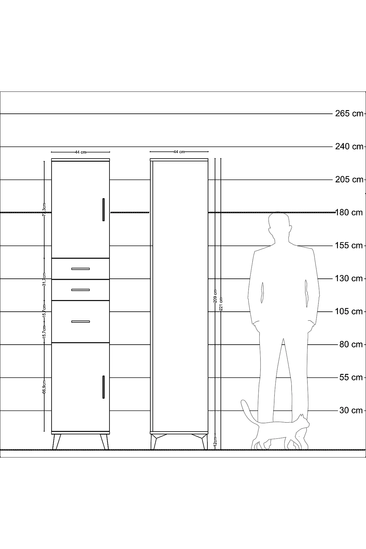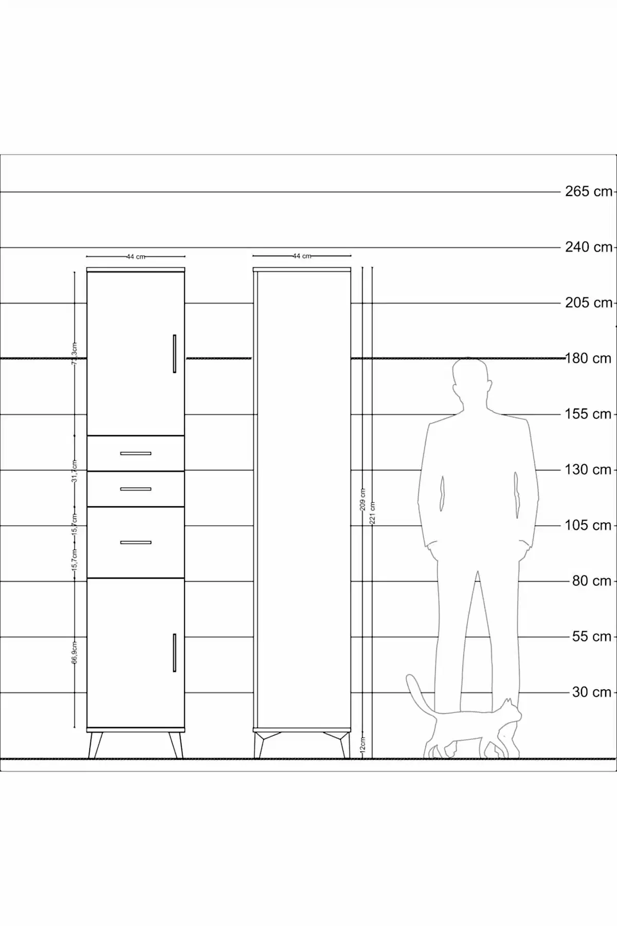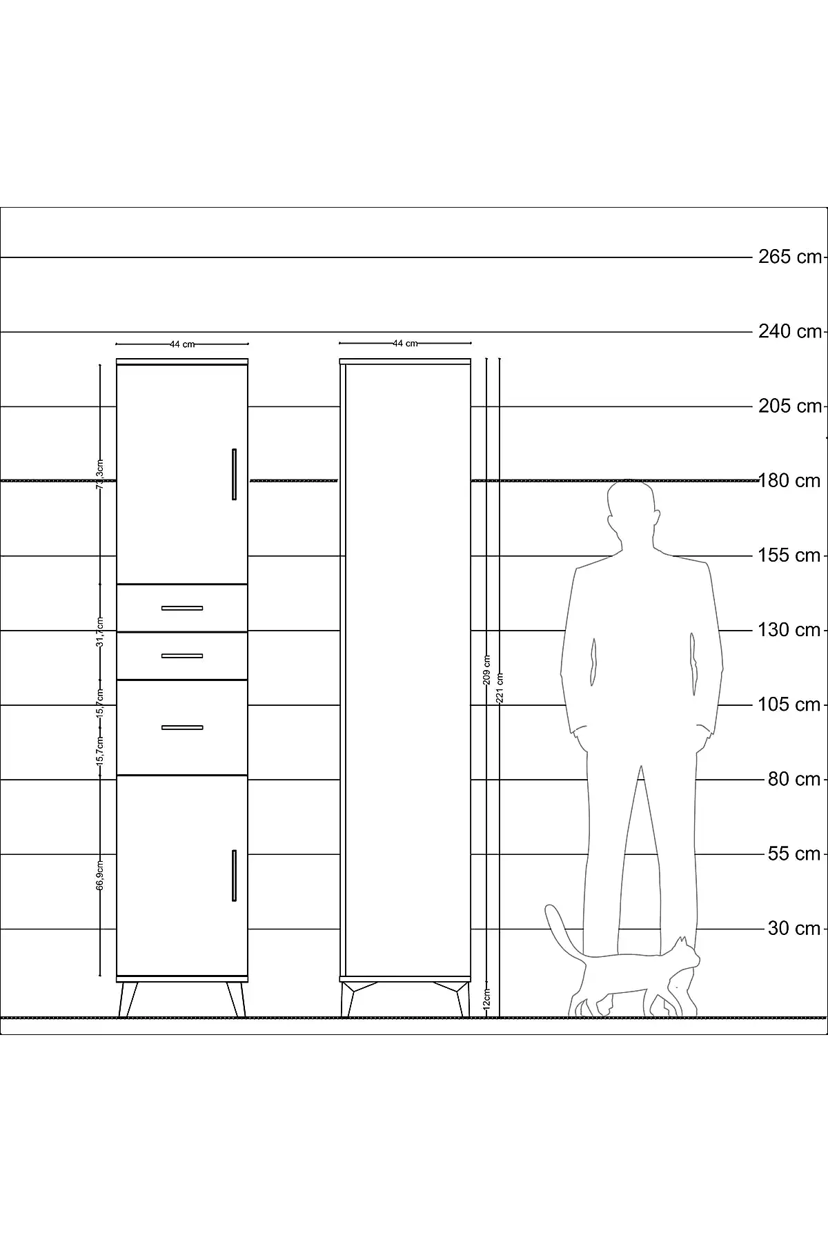 - Yükseklik: 221 cm