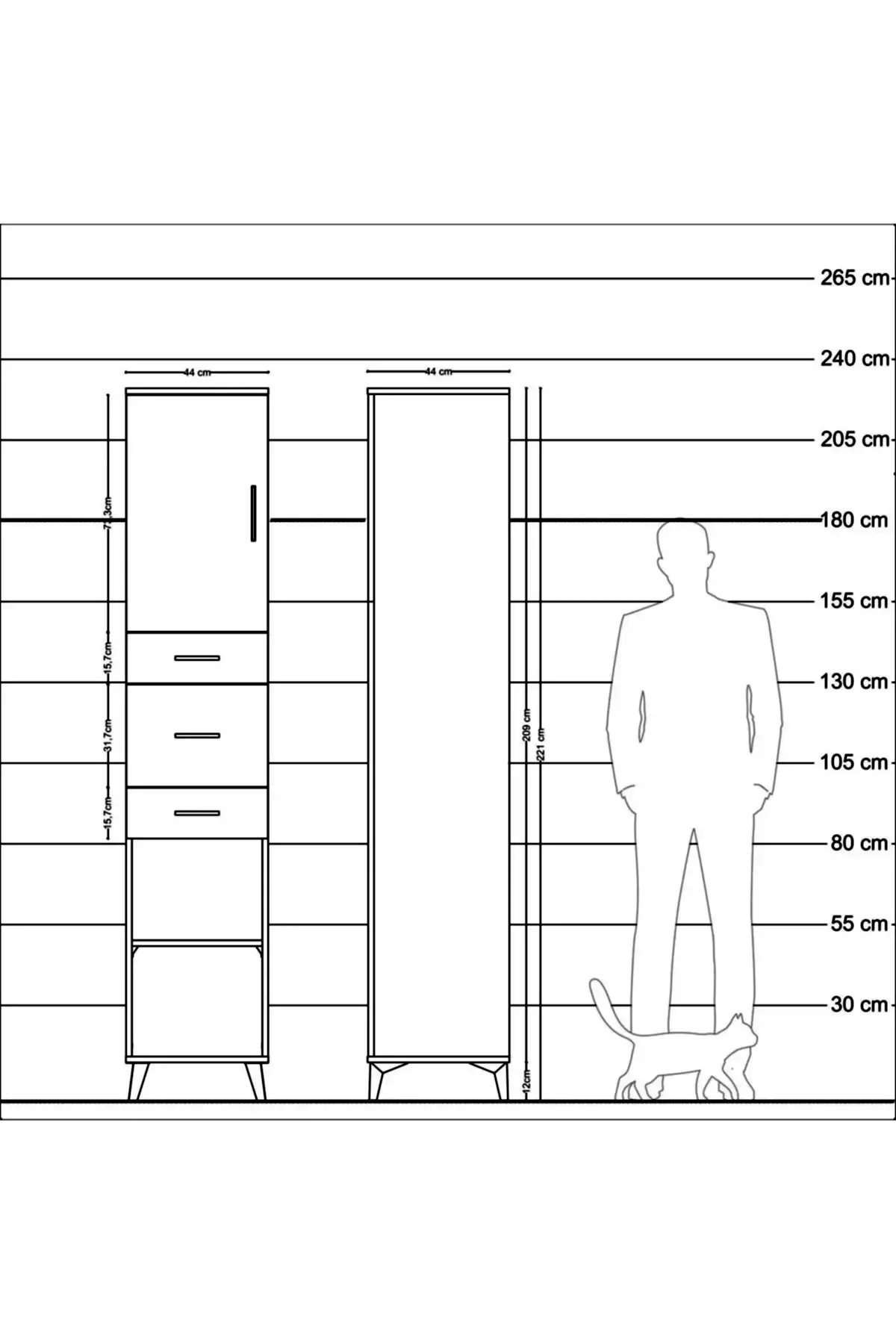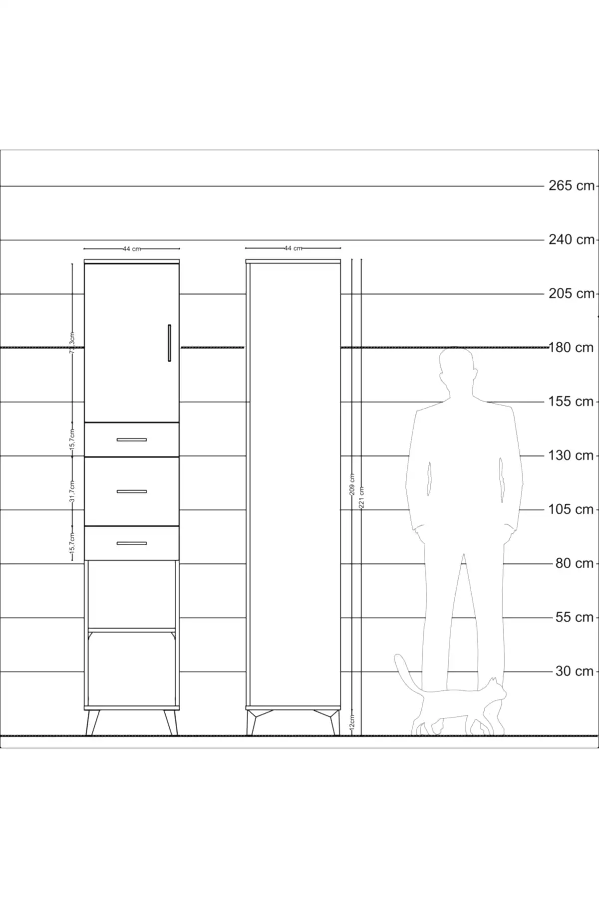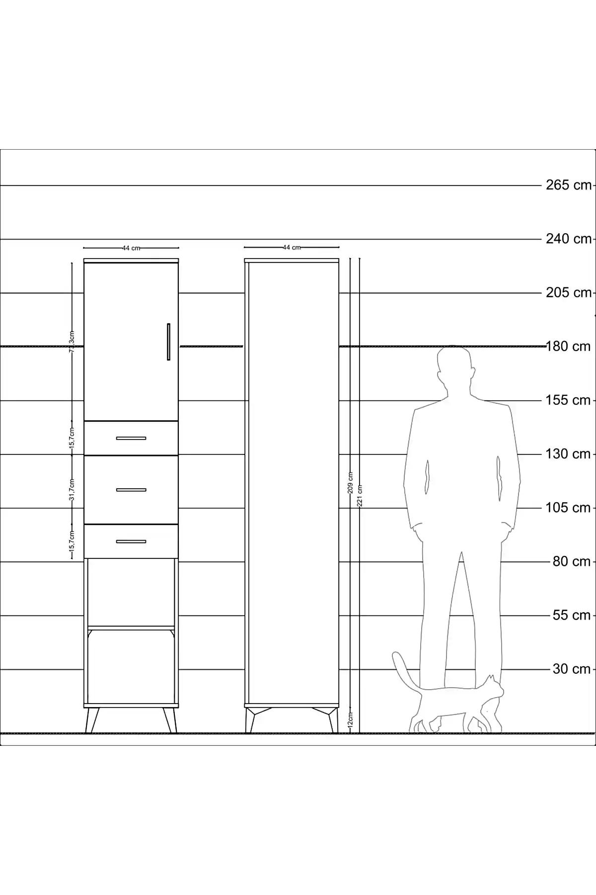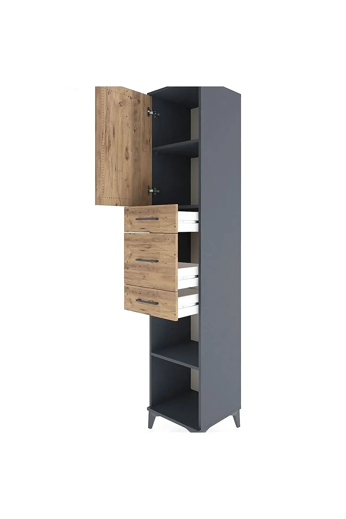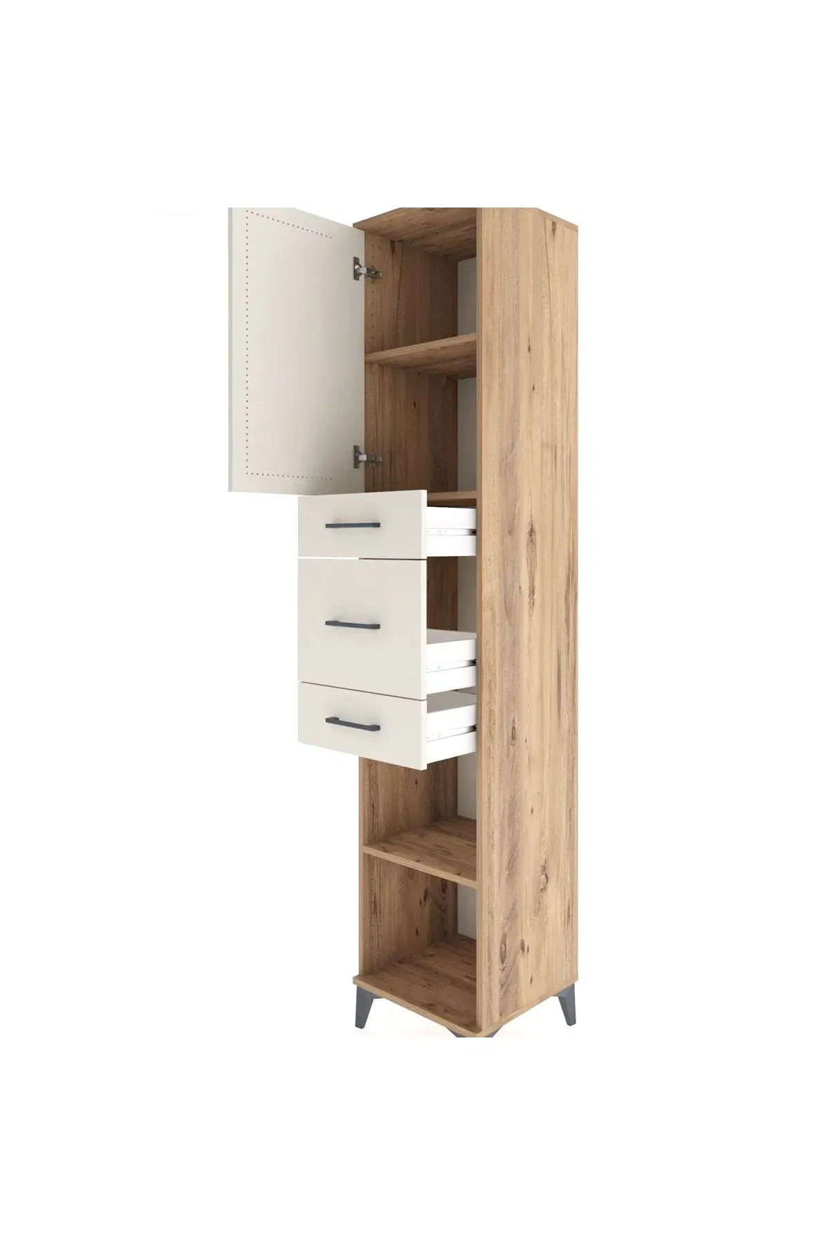 📌 Hyperion Dolap 3 Raflı 3 Çekmeceli Tek Kapaklı 44x44x221