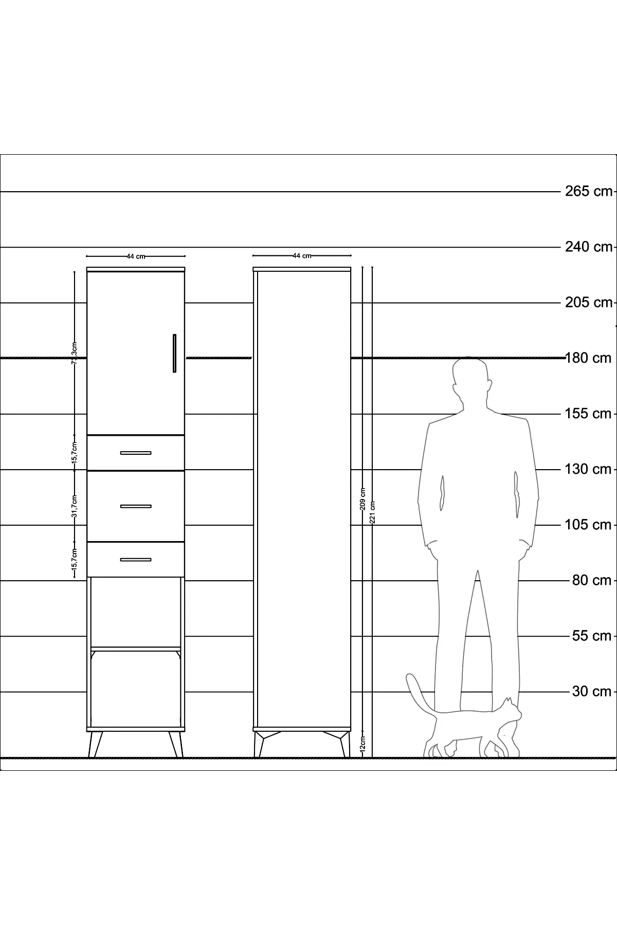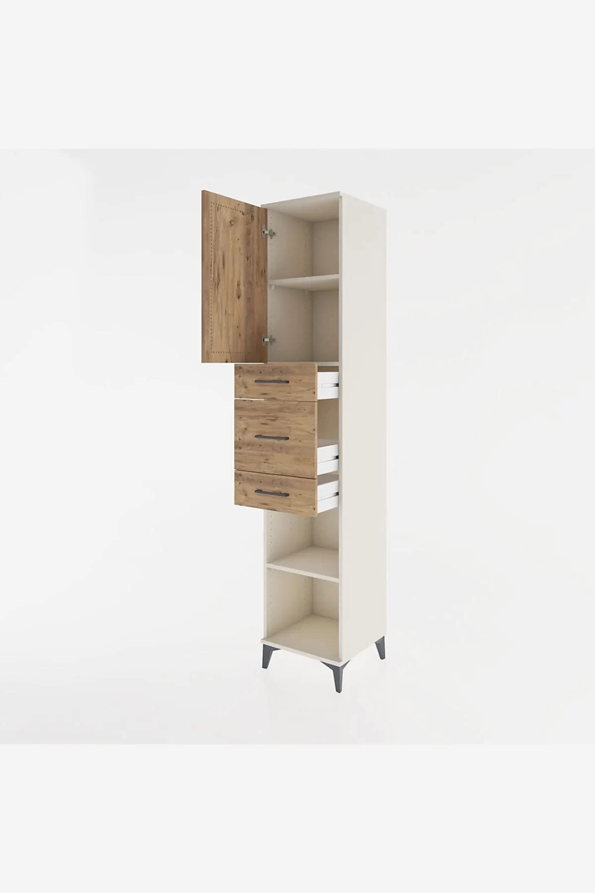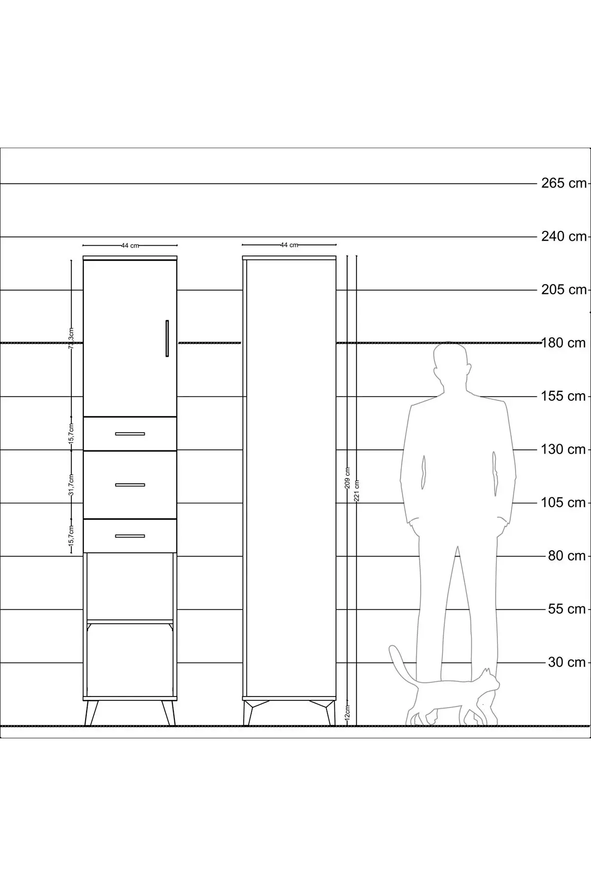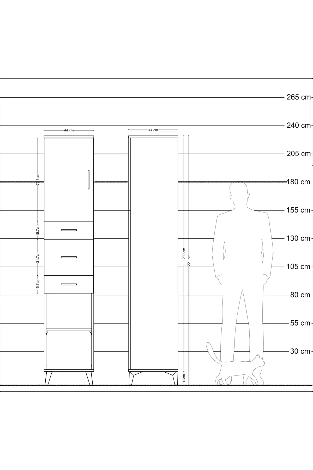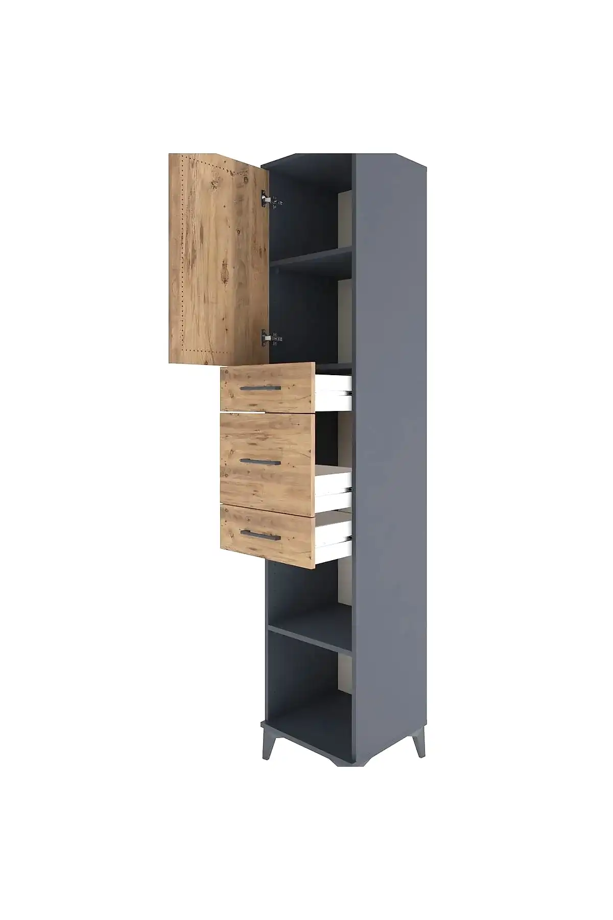 📌 Hyperion Dolap 3 Raflı 3 Çekmeceli Tek Kapaklı 44x44x221