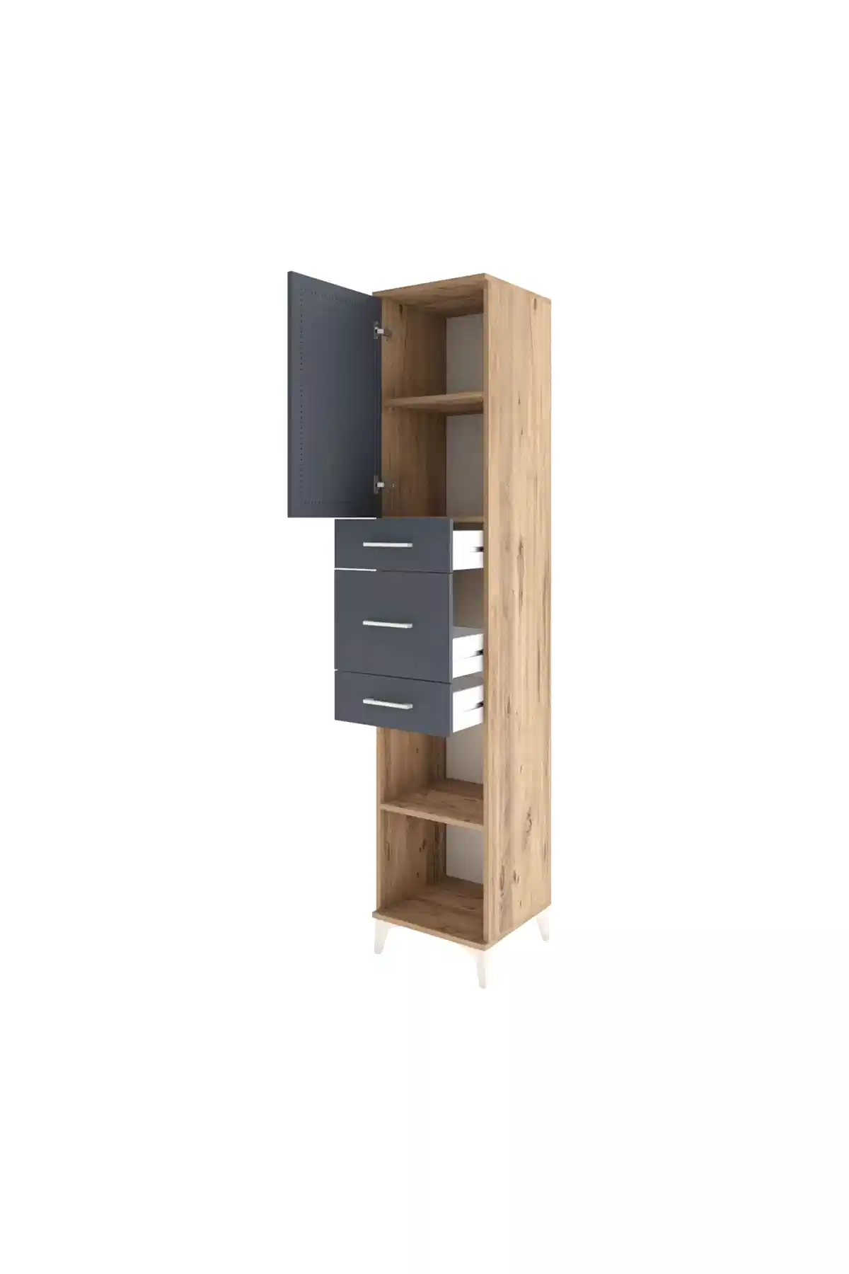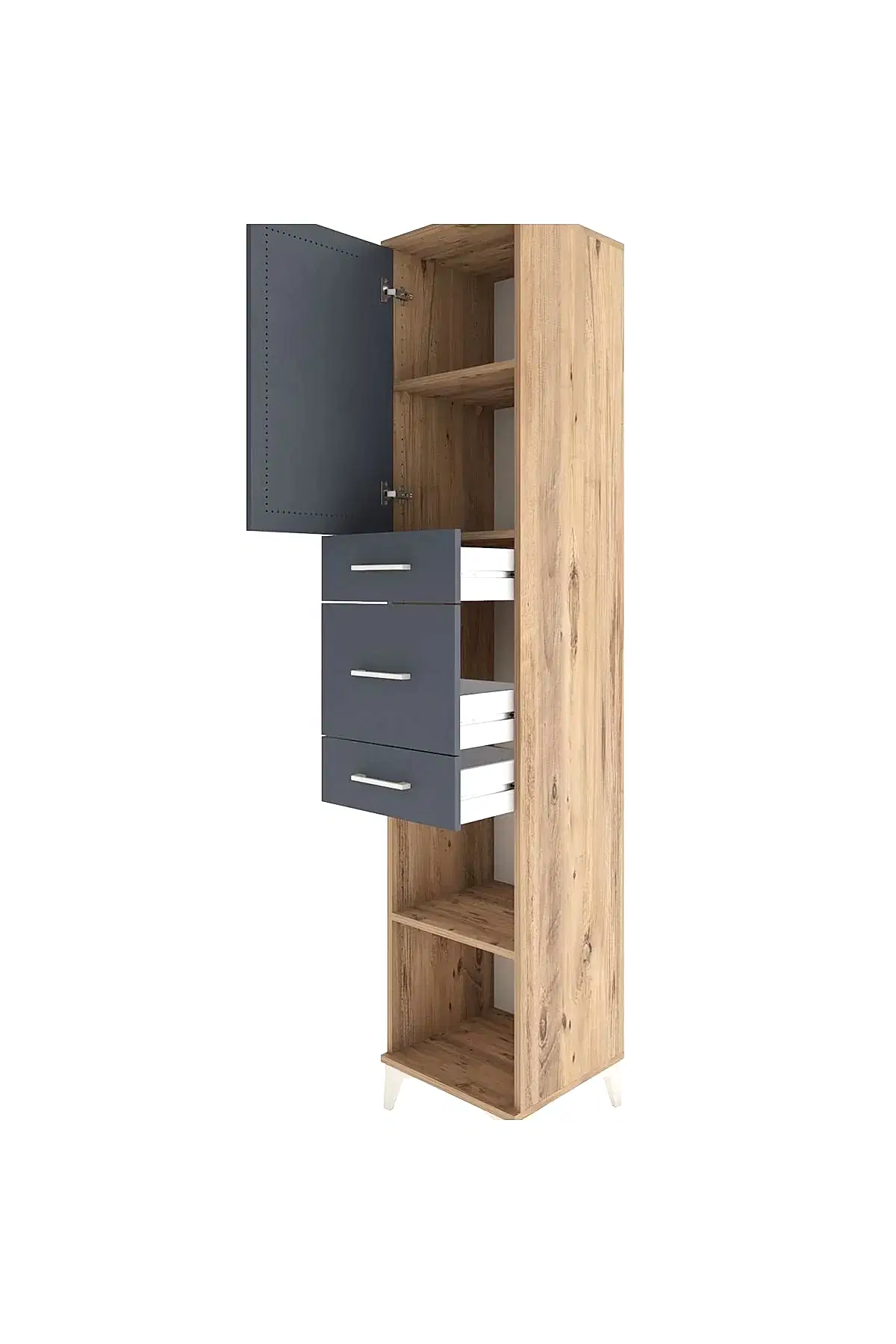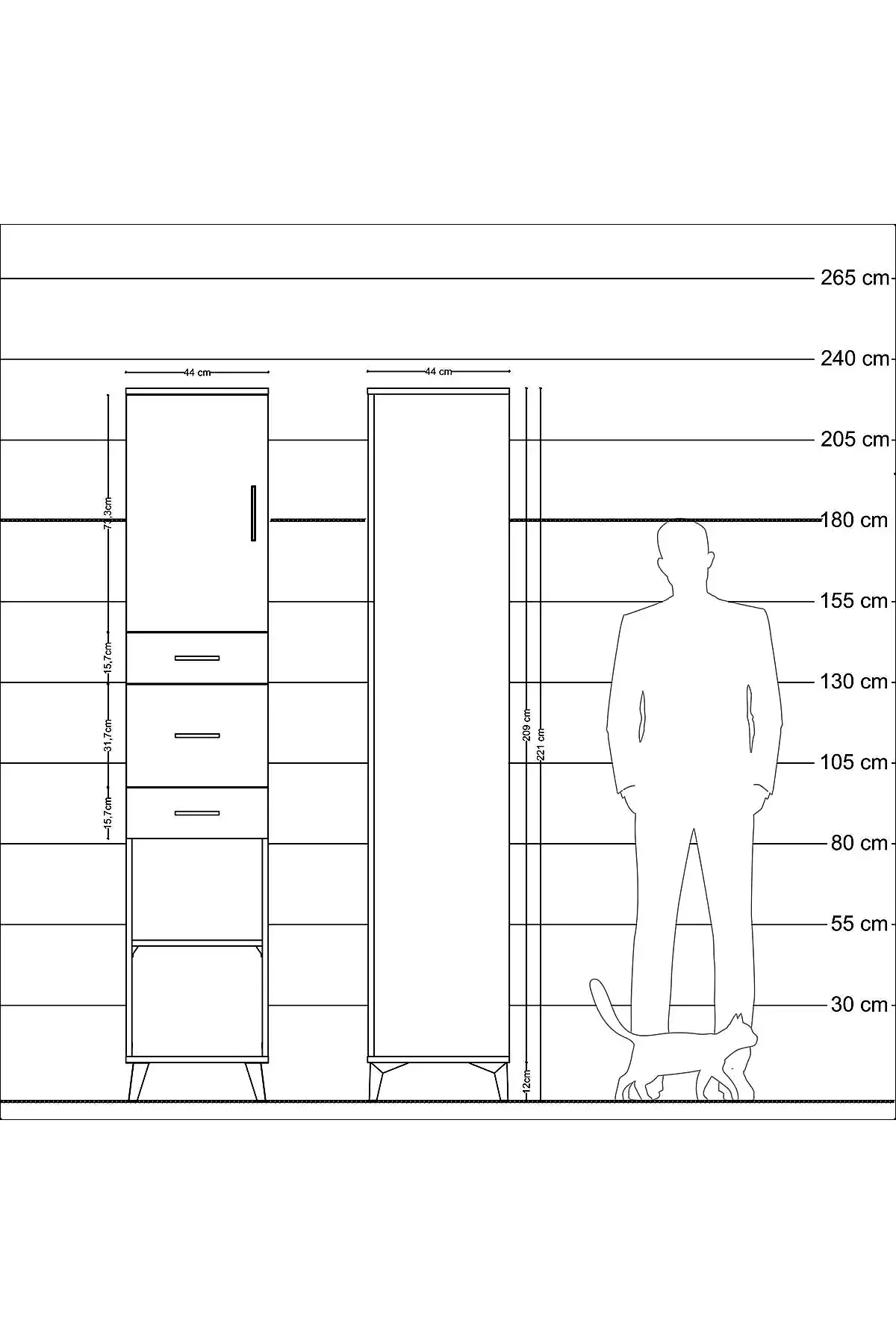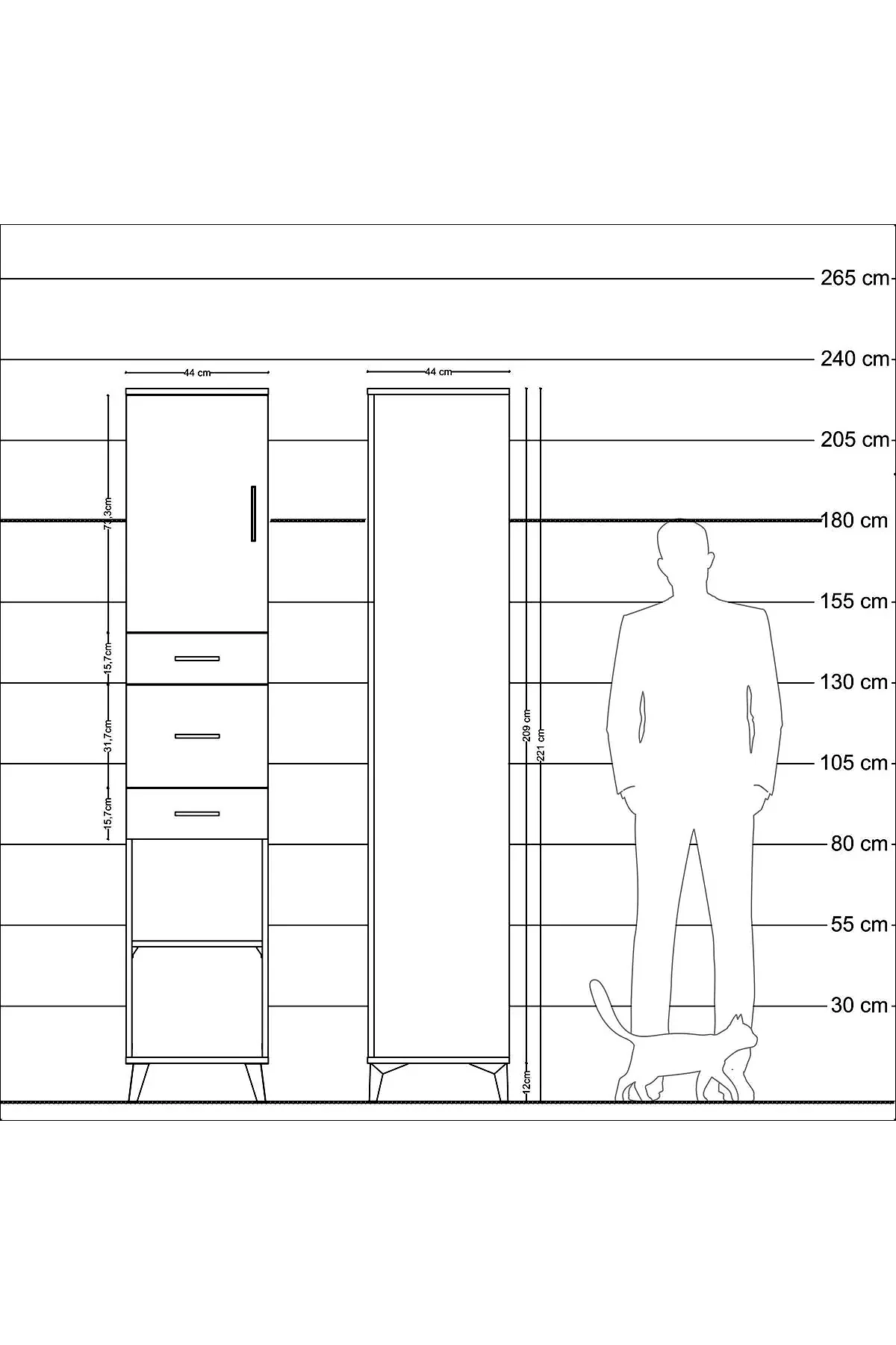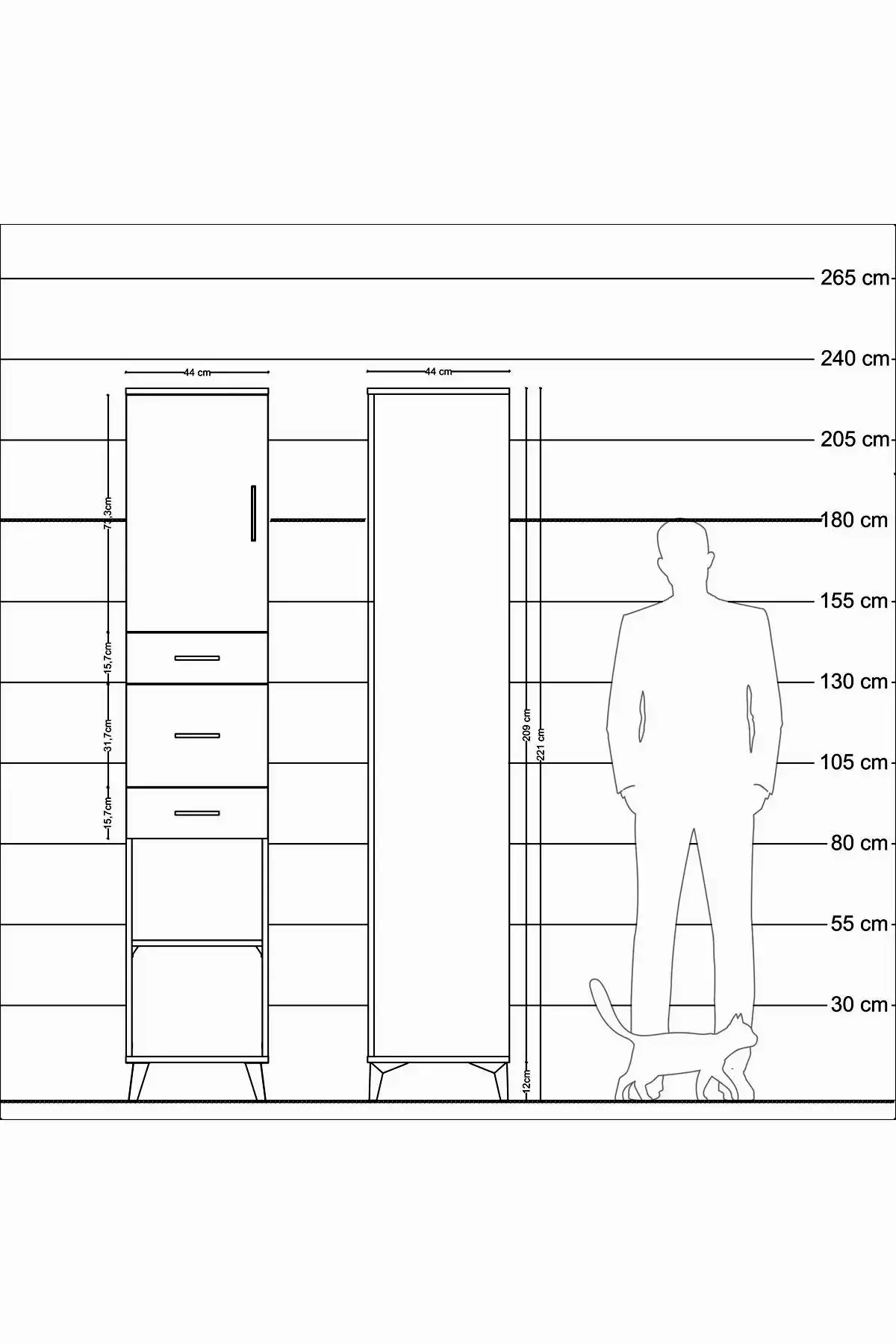 📌 Hyperion Dolap 3 Raflı 3 Çekmeceli Tek Kapaklı 44x44x221