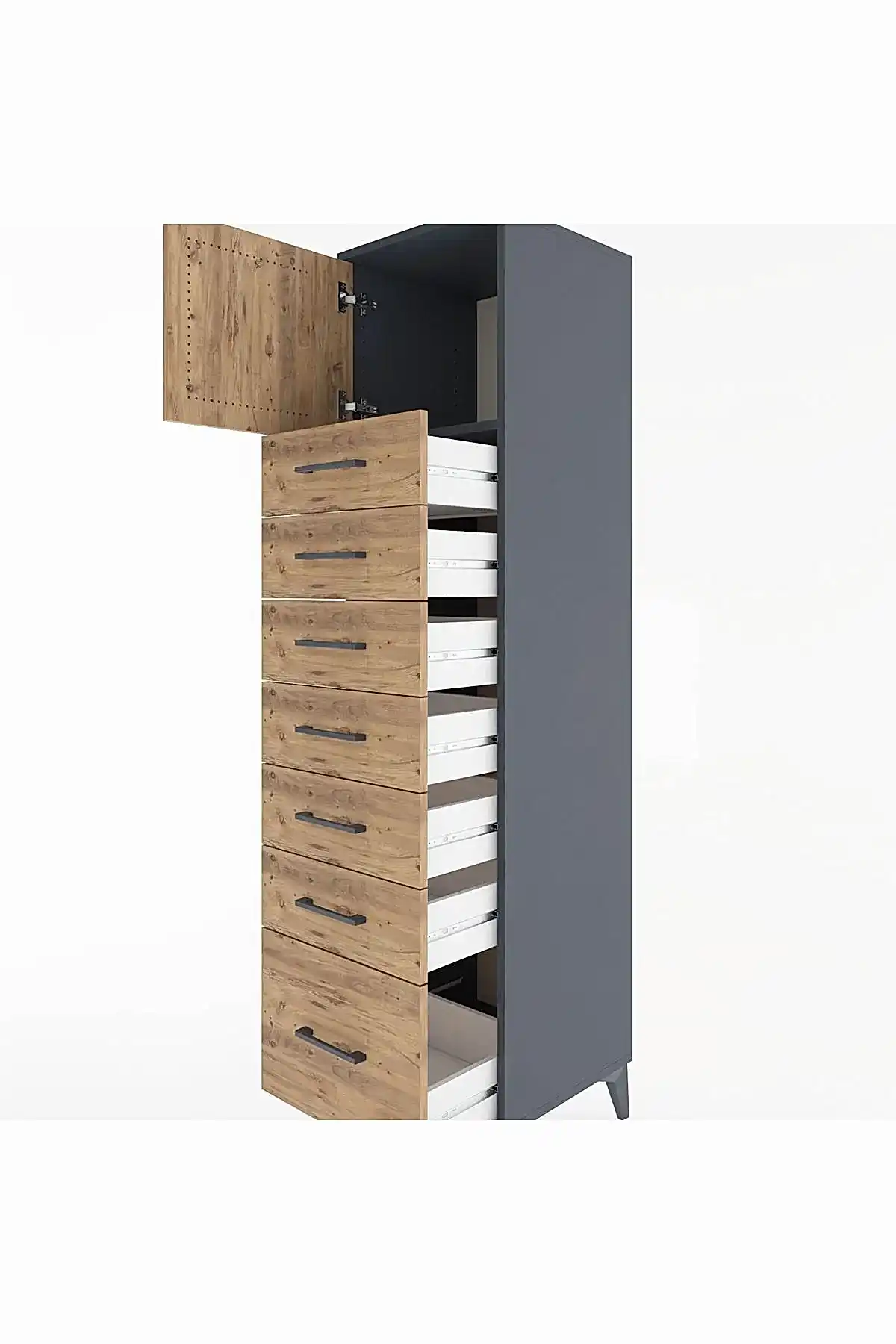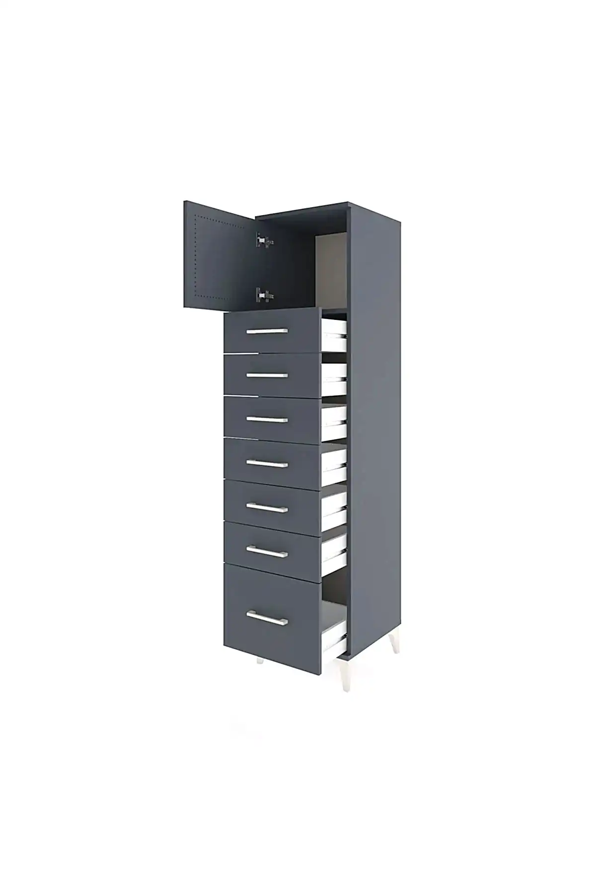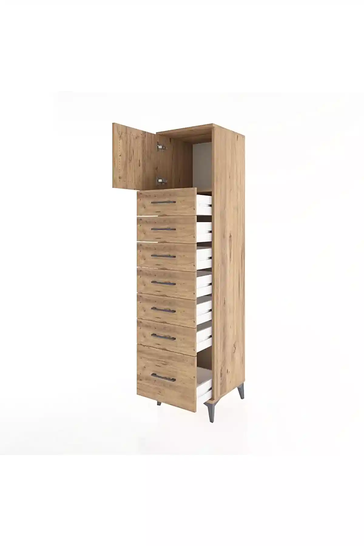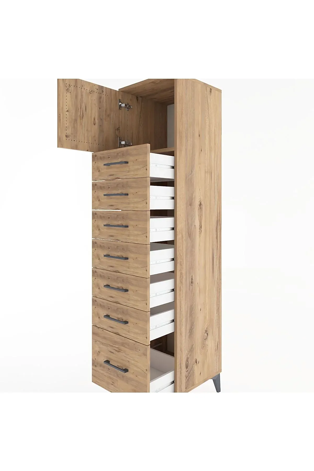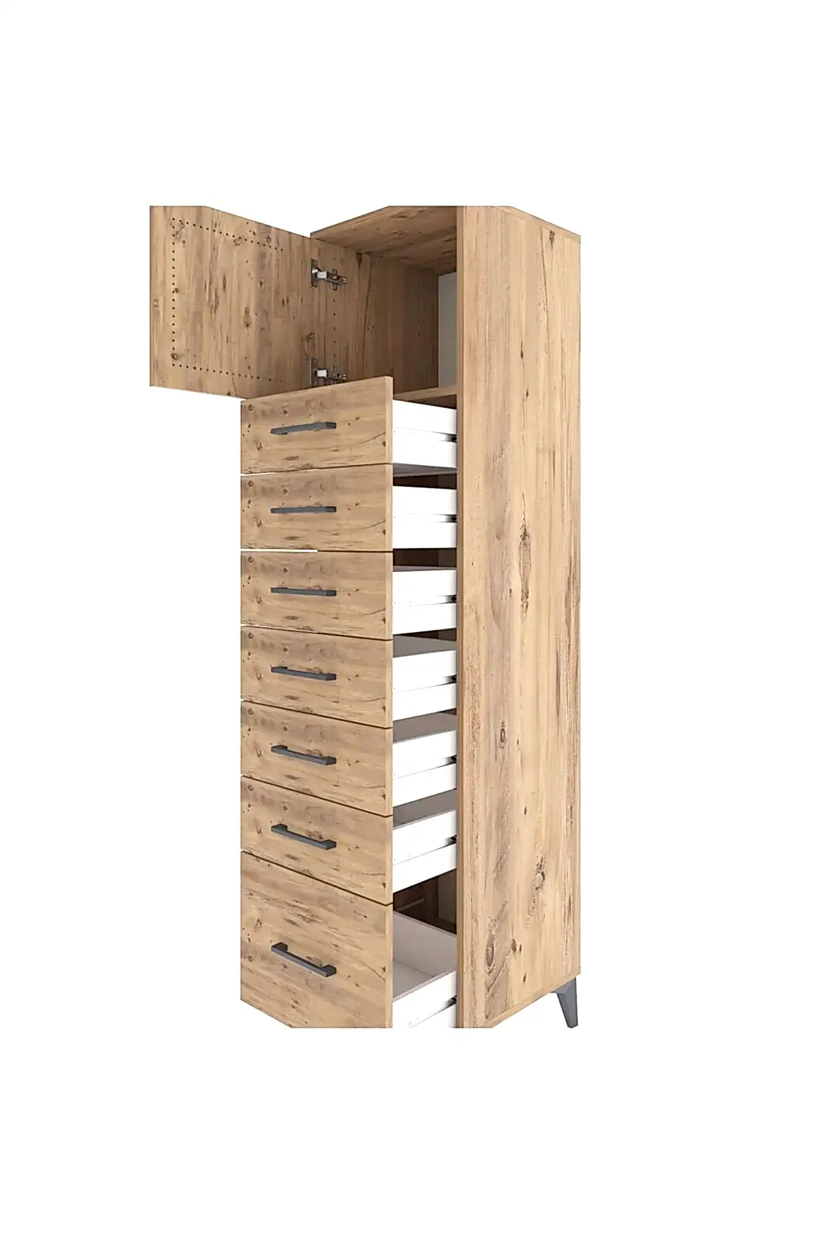 📌 Hyperion Dolap Tek Raflı 7 Çekmeceli Tek Kapaklı 44x44x182