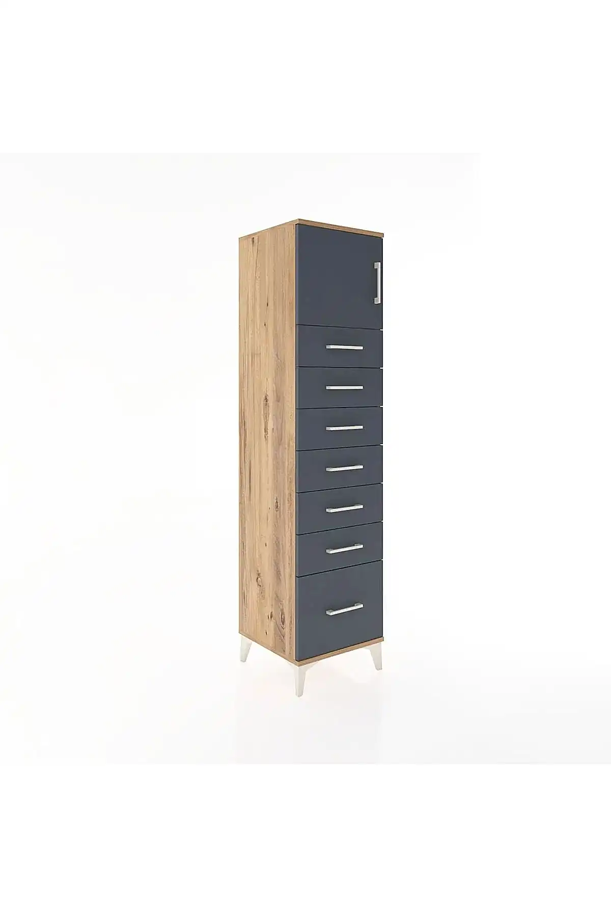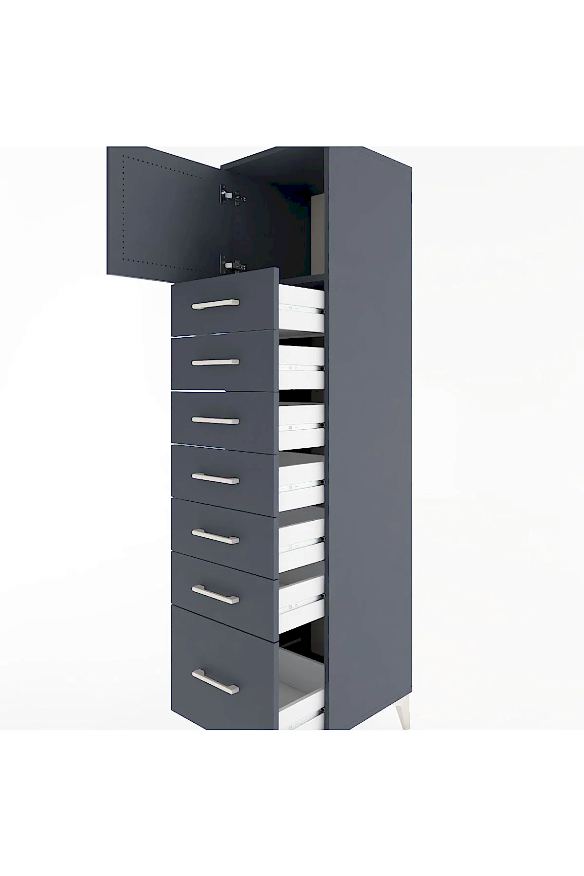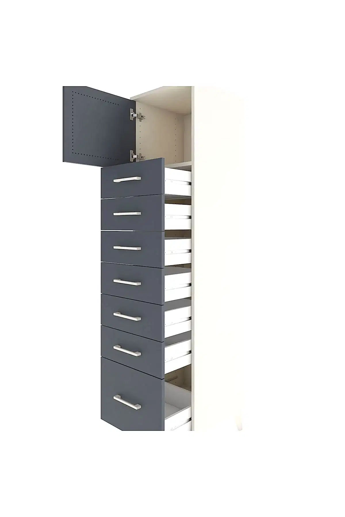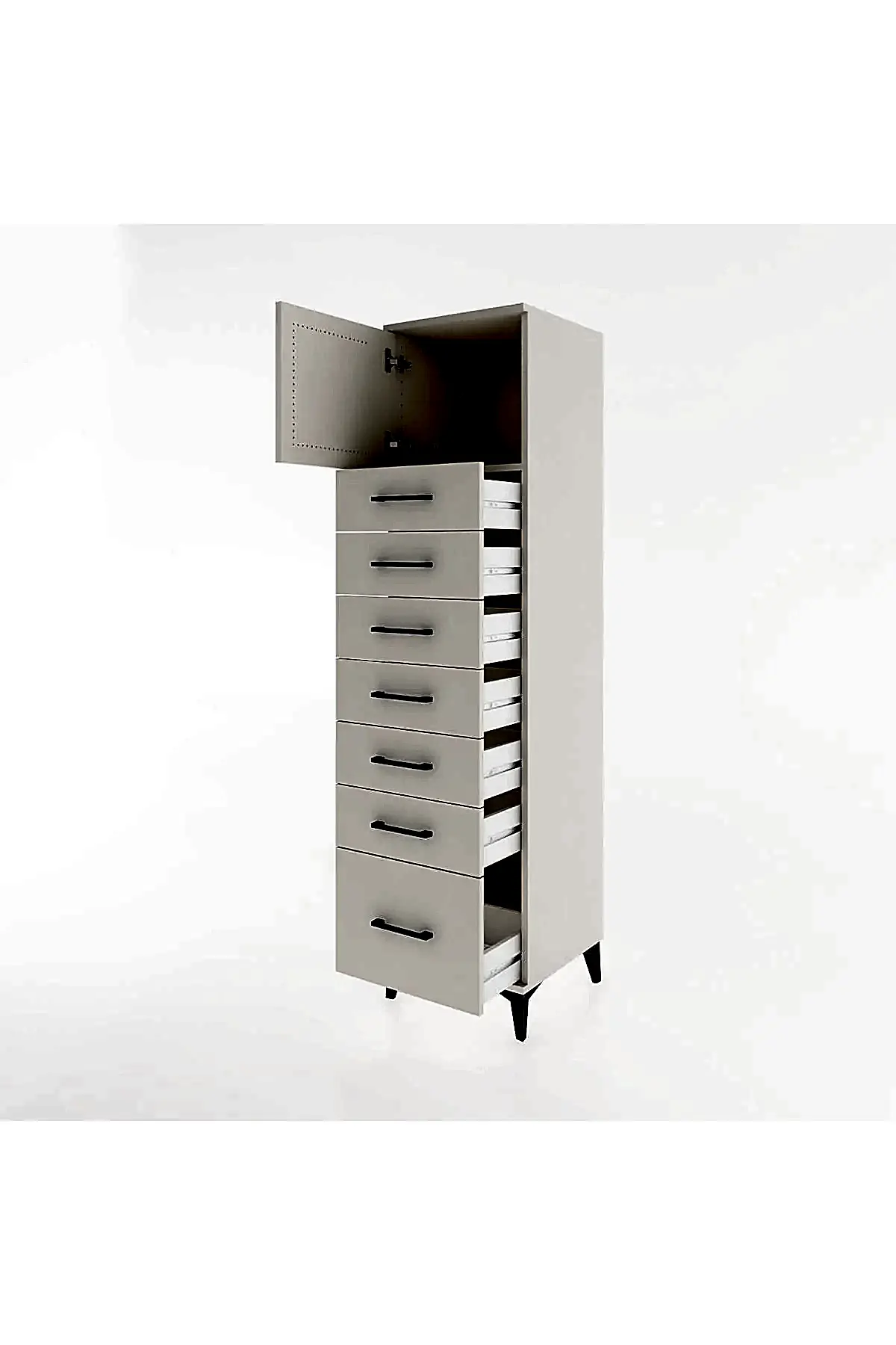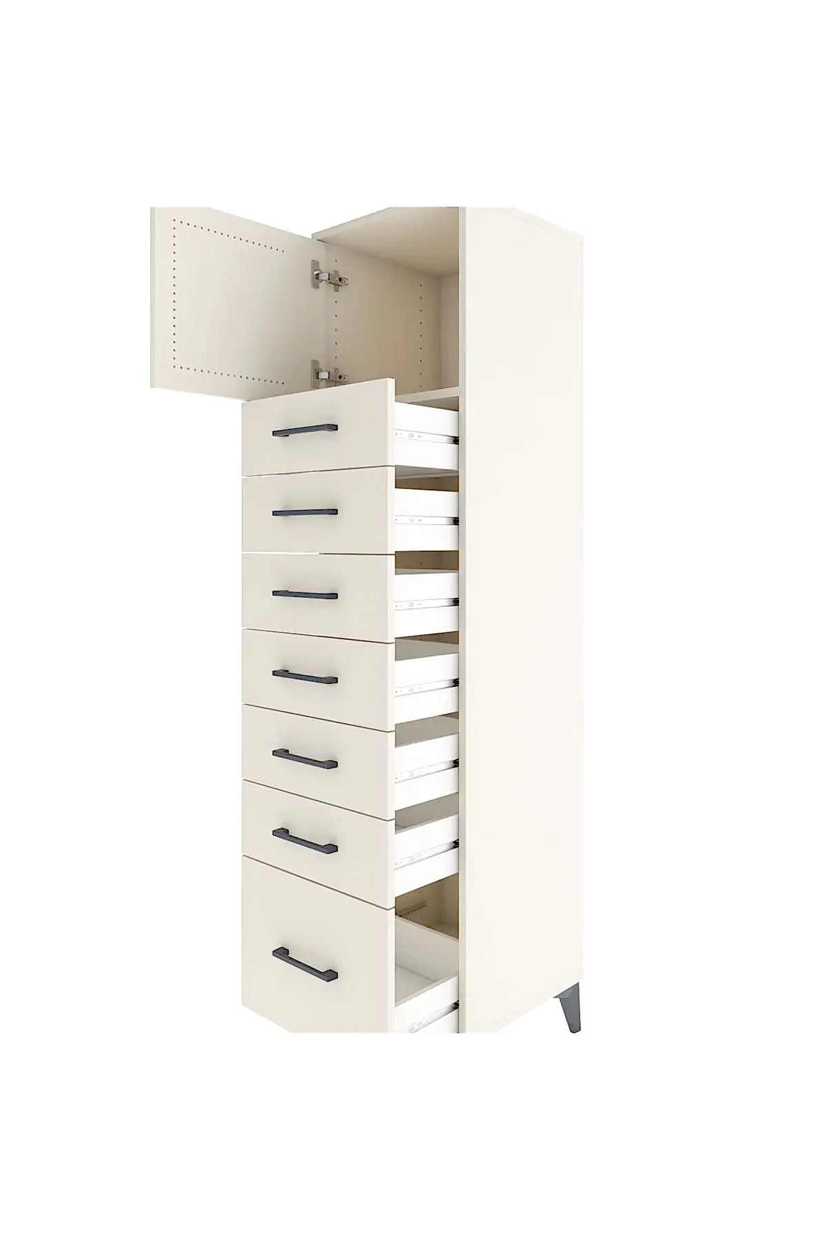 📌 Hyperion Dolap Tek Raflı 7 Çekmeceli Tek Kapaklı 44x44x182