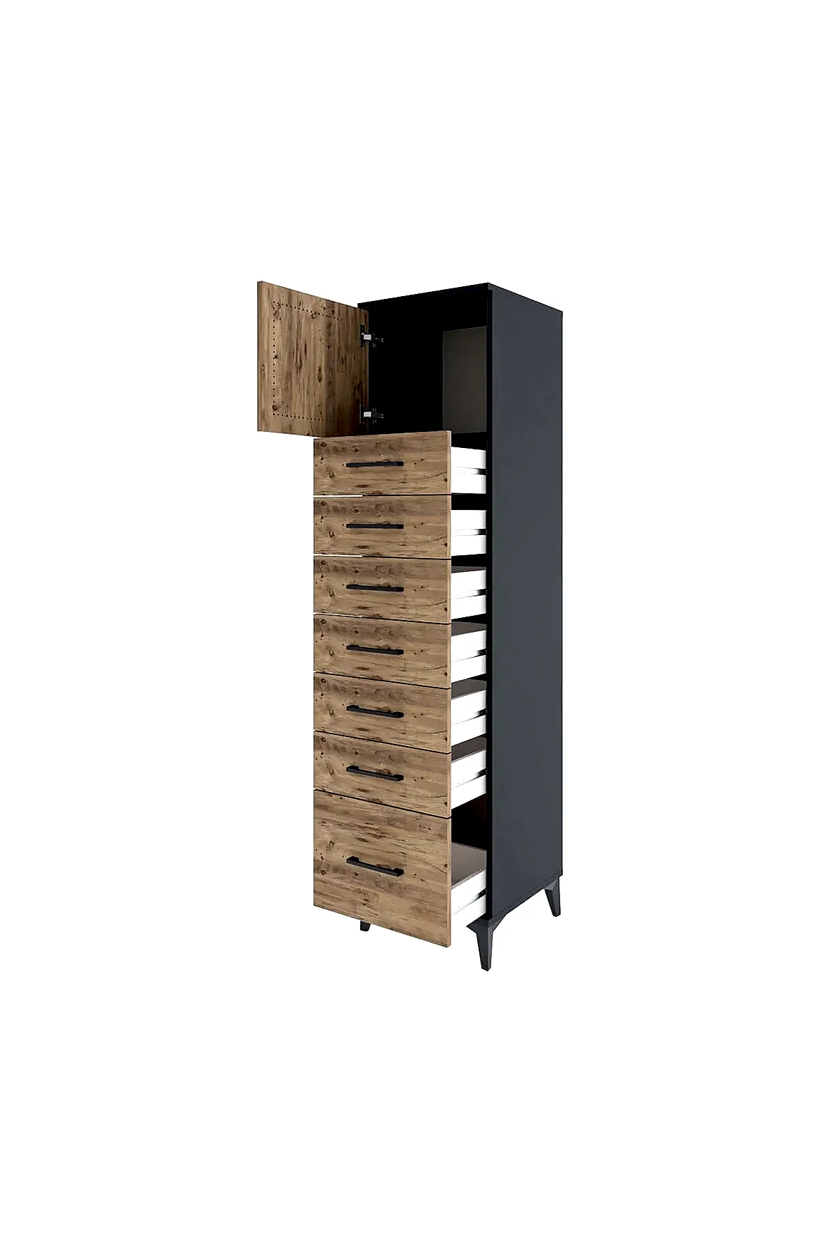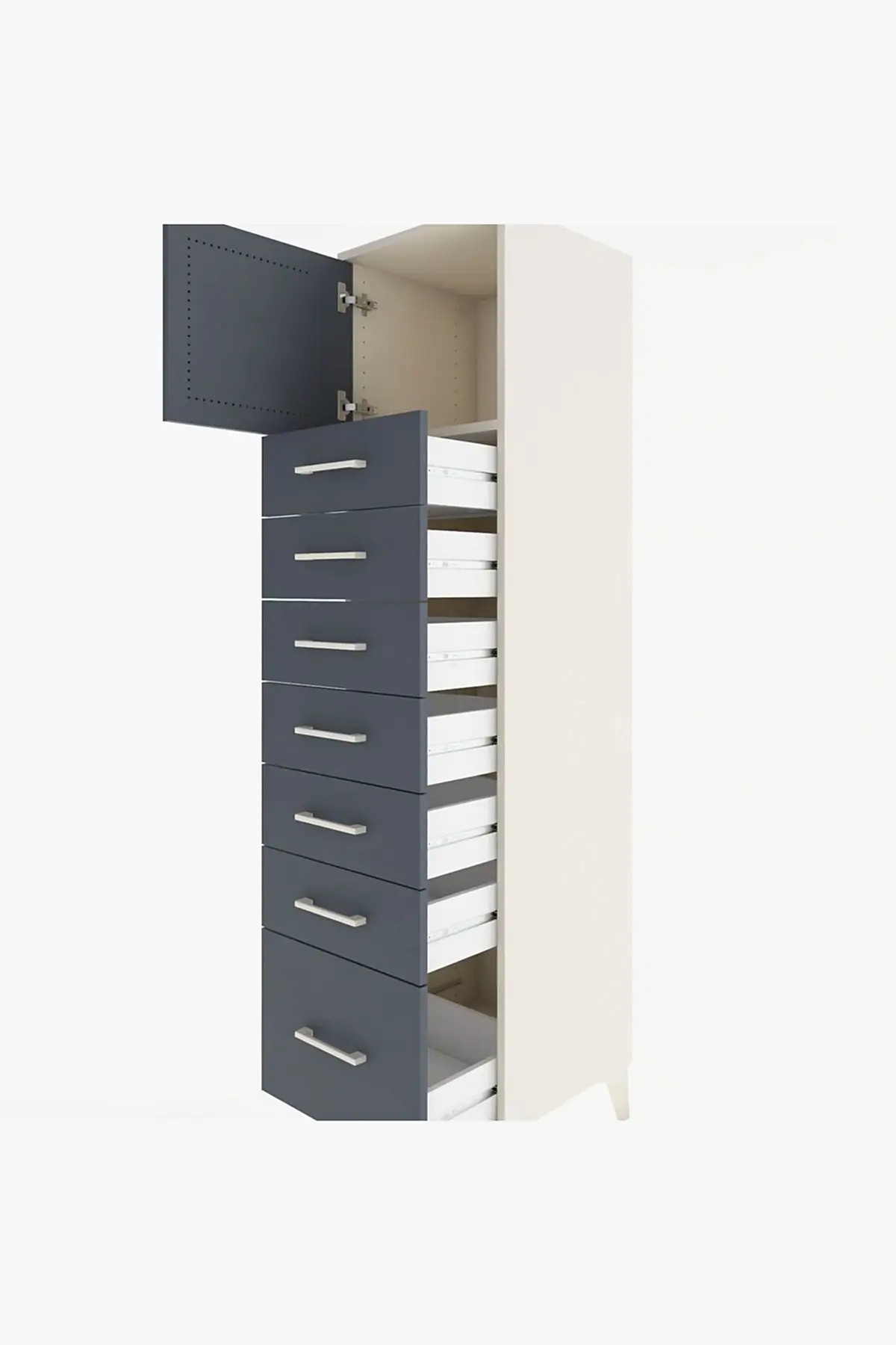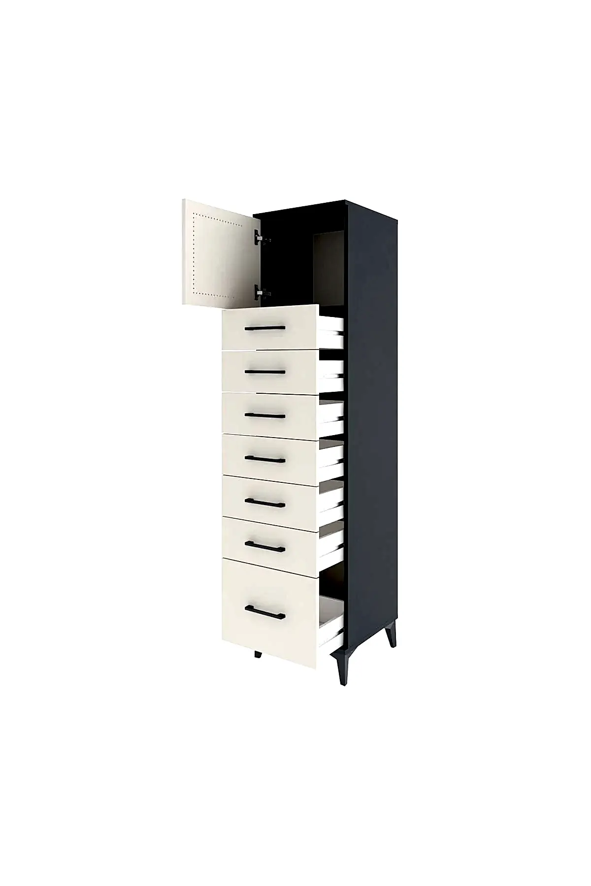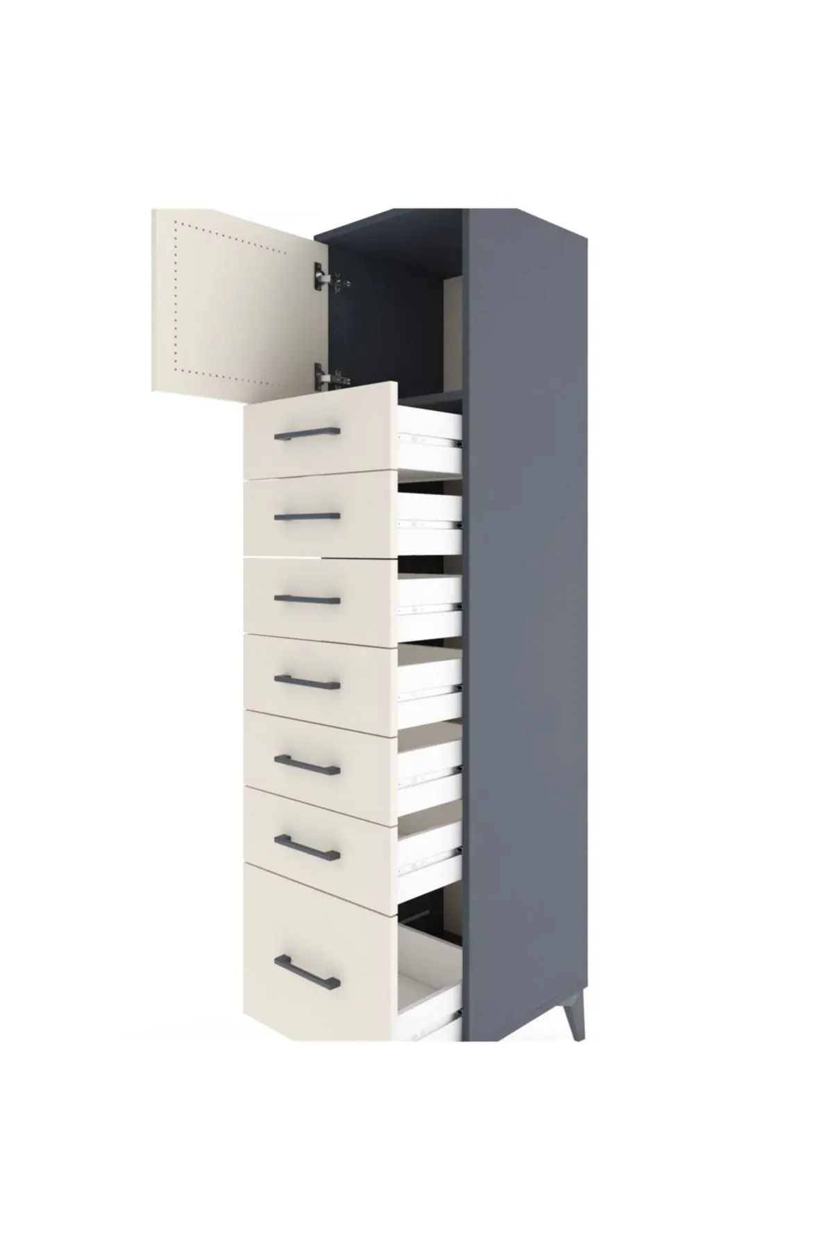 📌 Hyperion Dolap Tek Raflı 7 Çekmeceli Tek Kapaklı 44x44x182