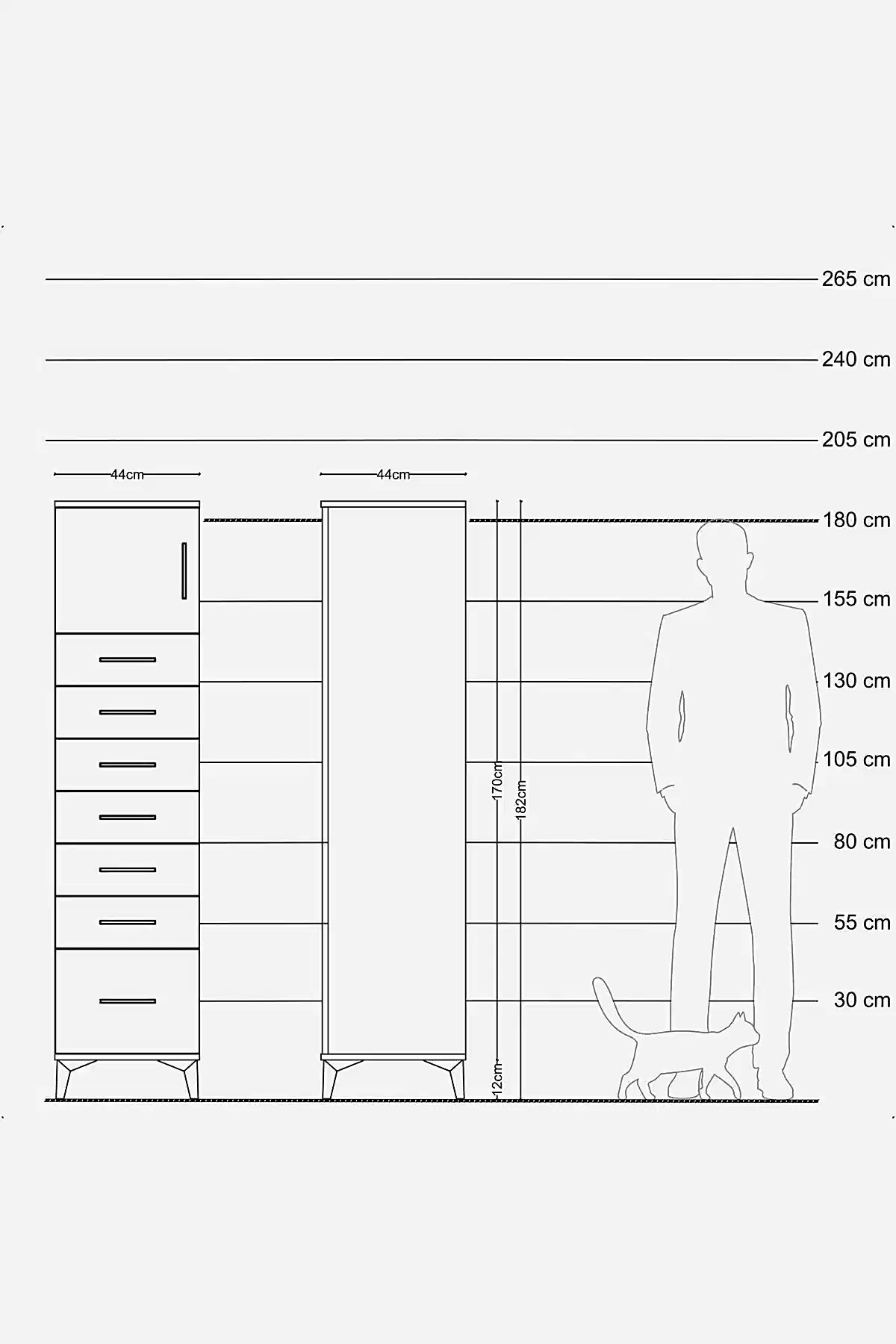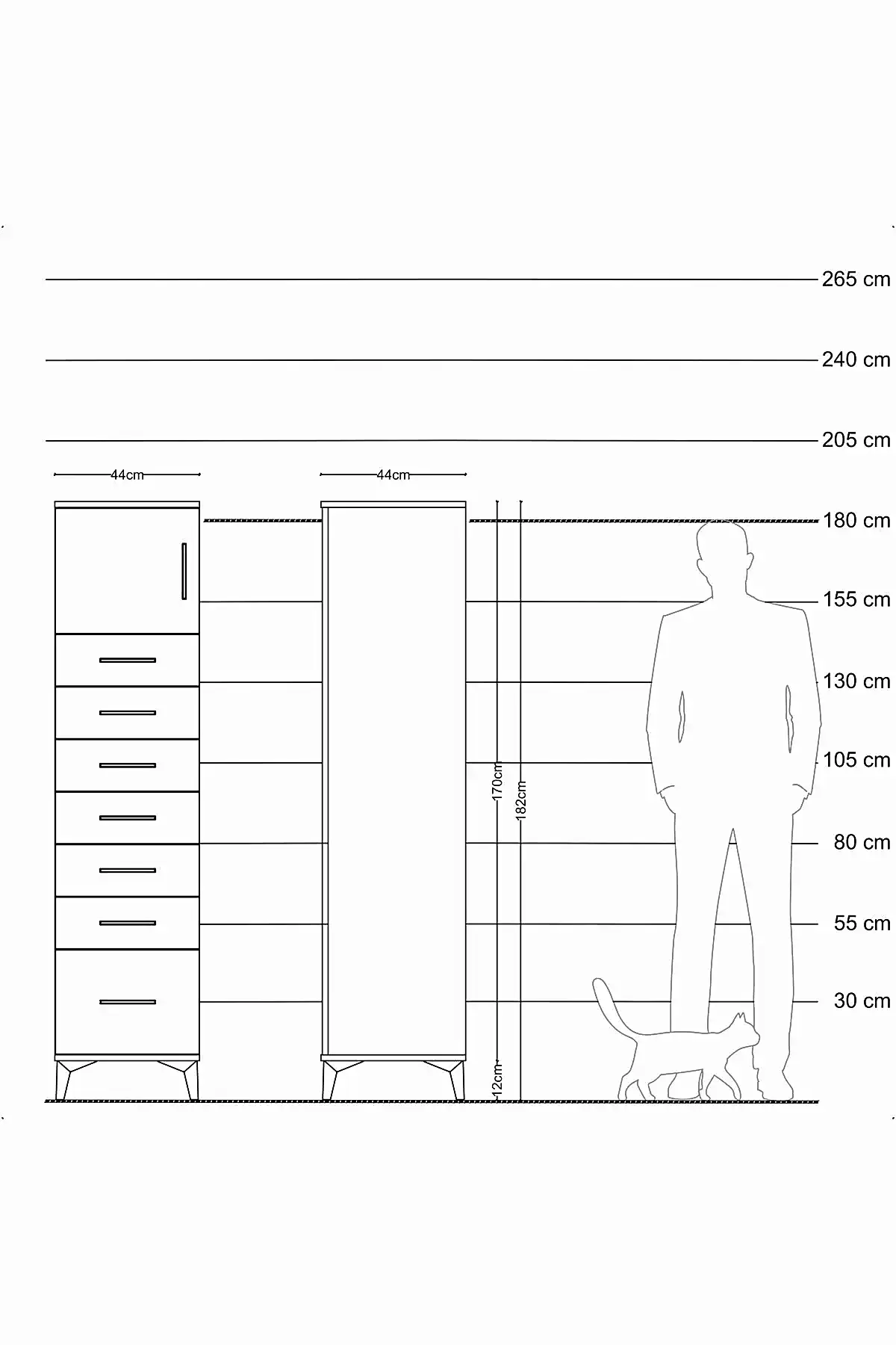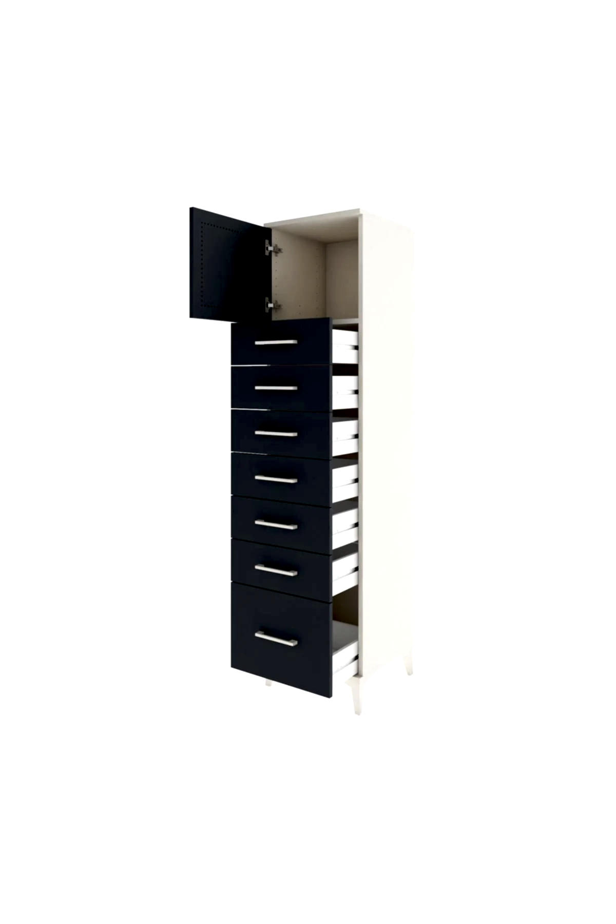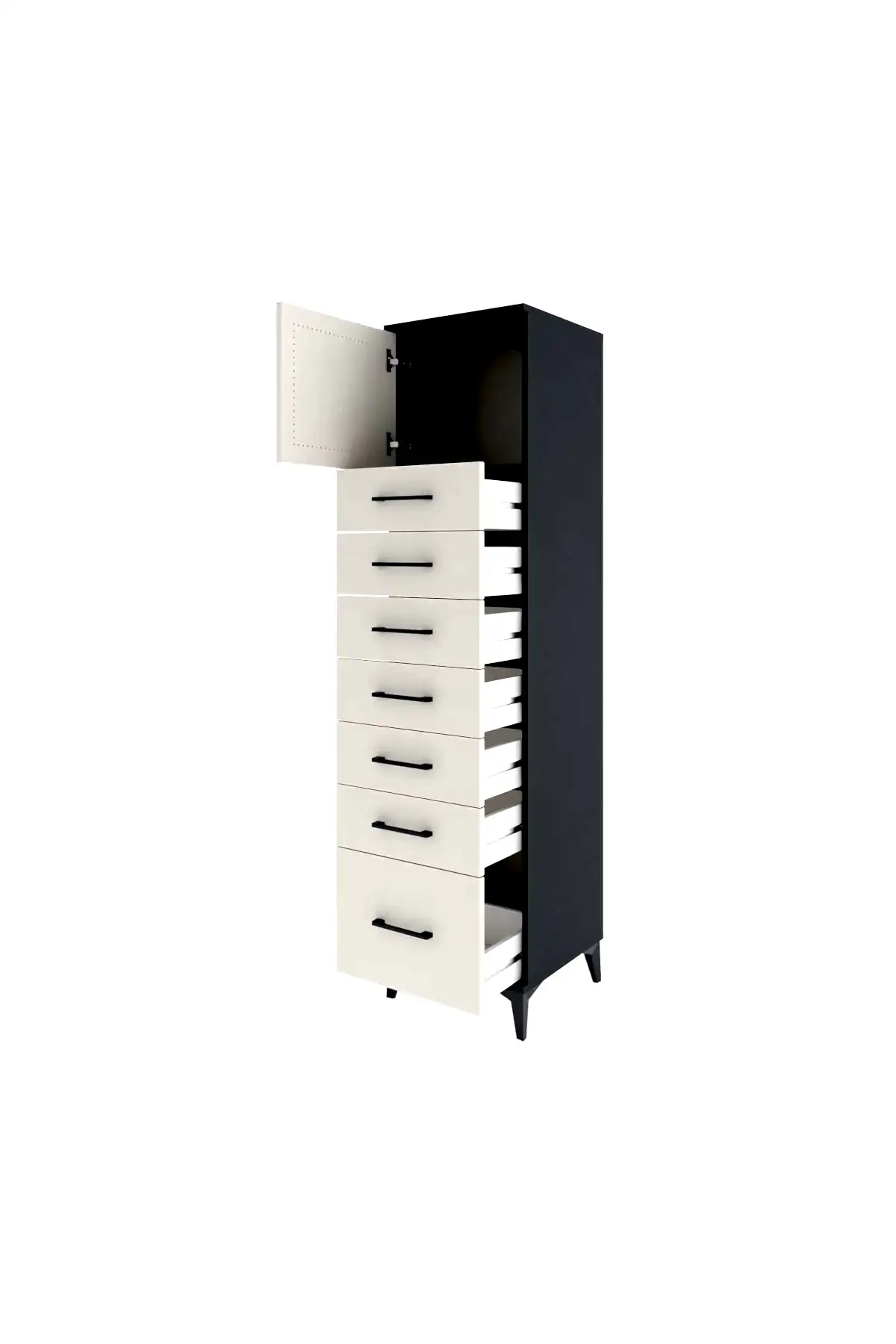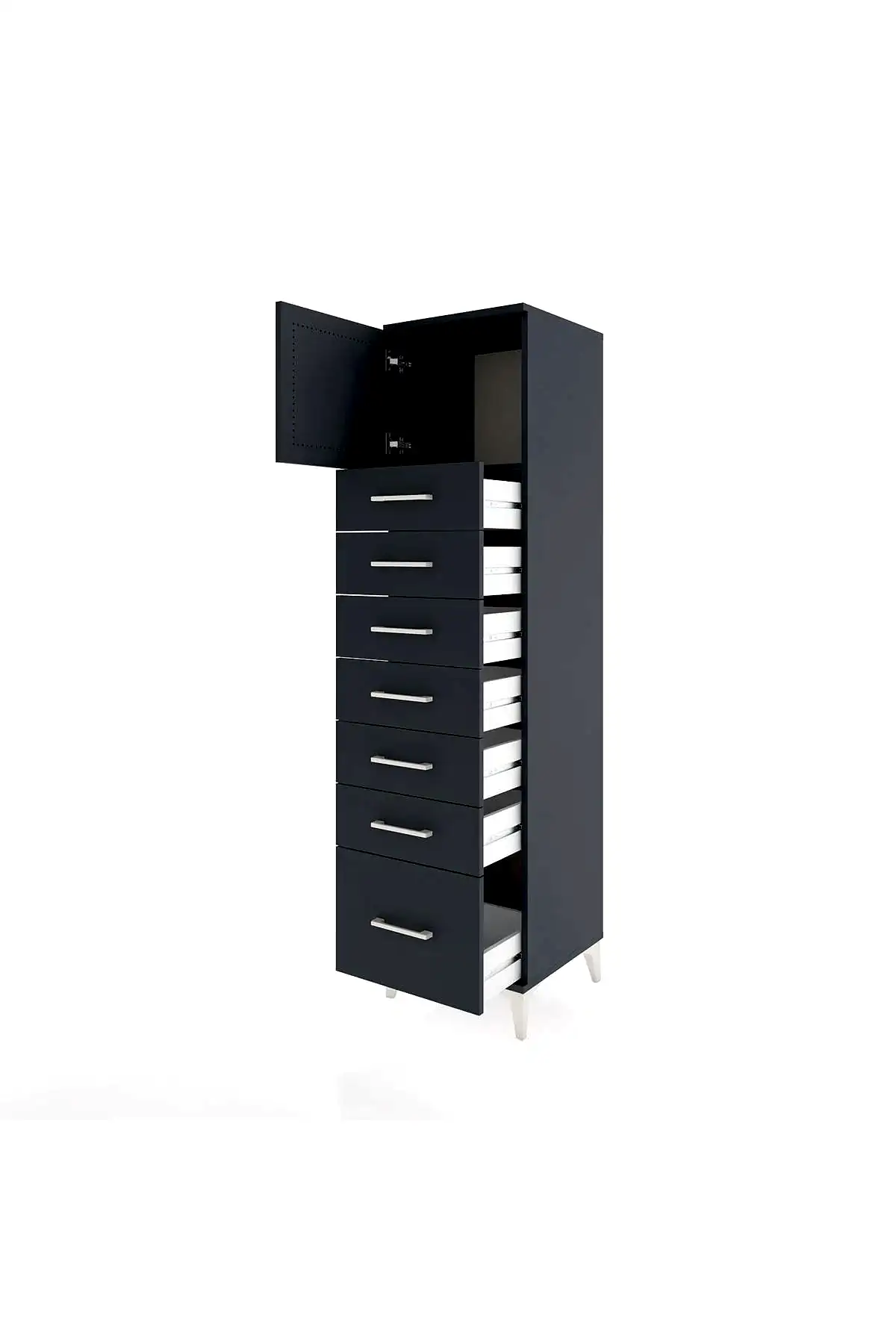 📌 Hyperion Dolap Tek Raflı 7 Çekmeceli Tek Kapaklı 44x44x182