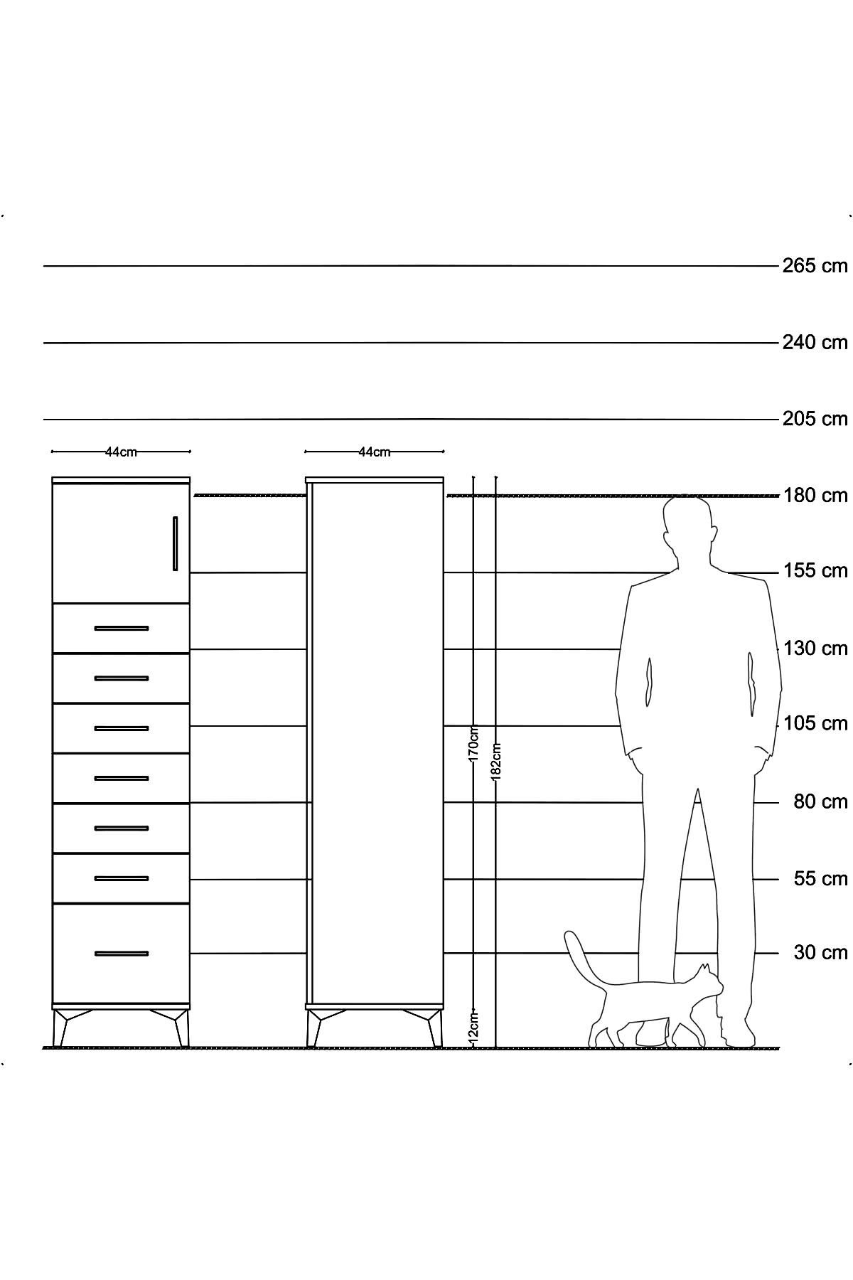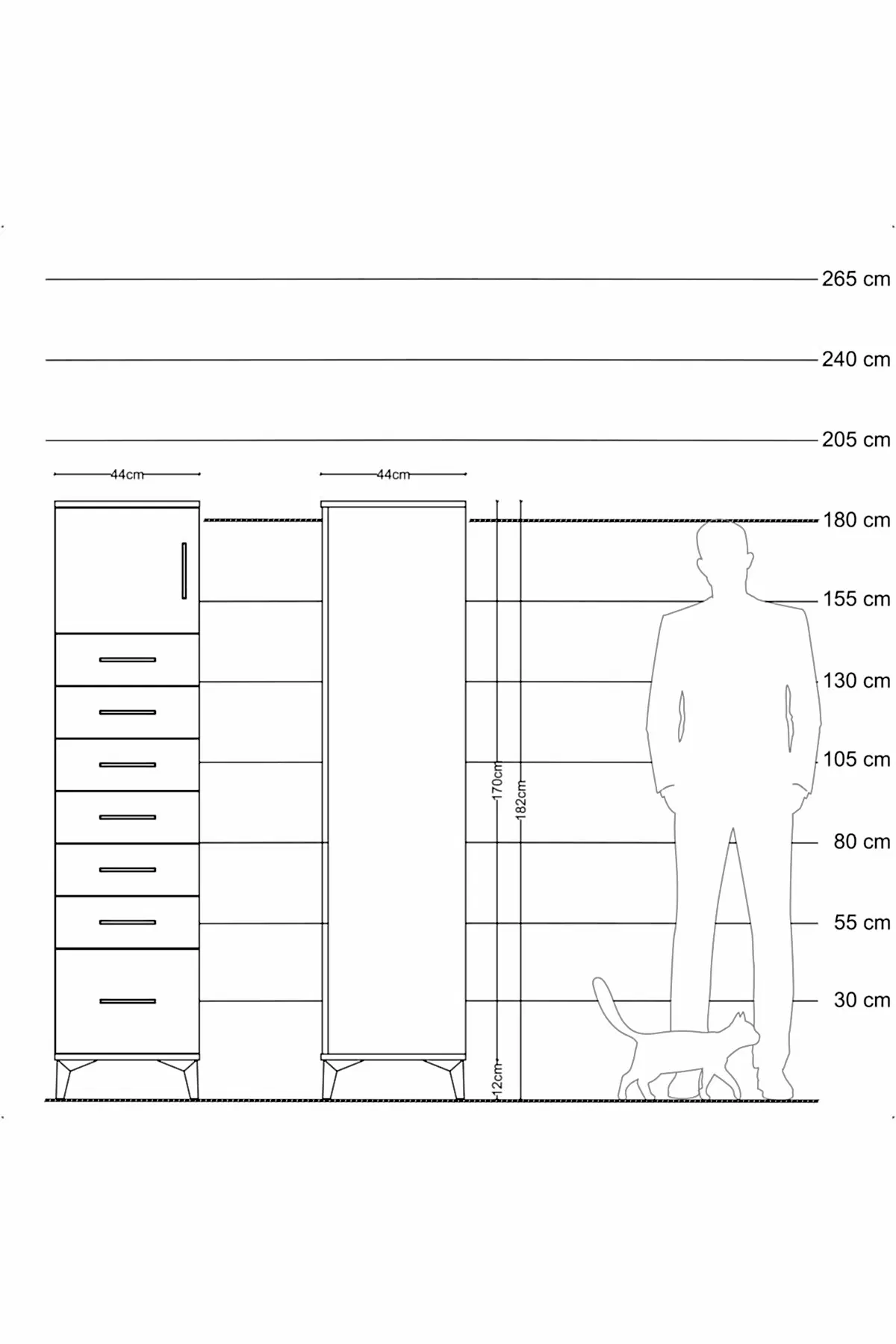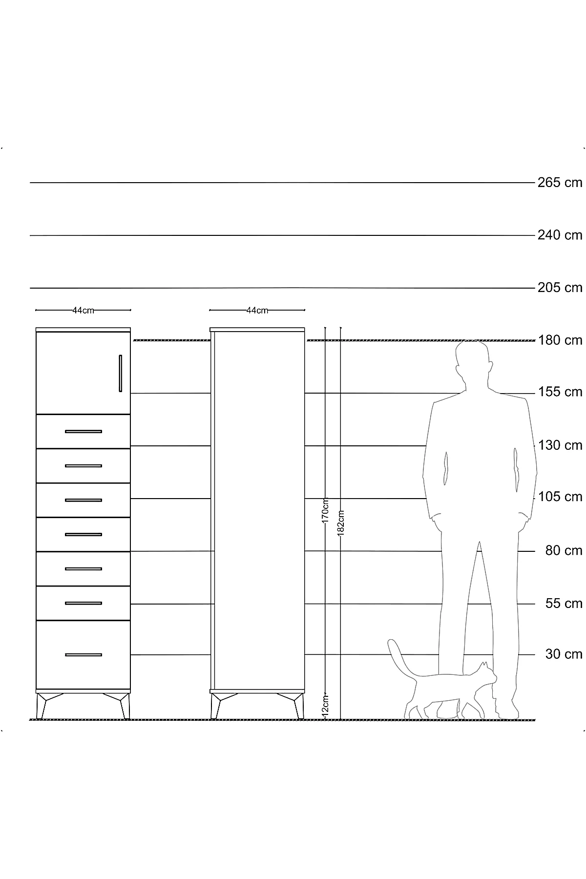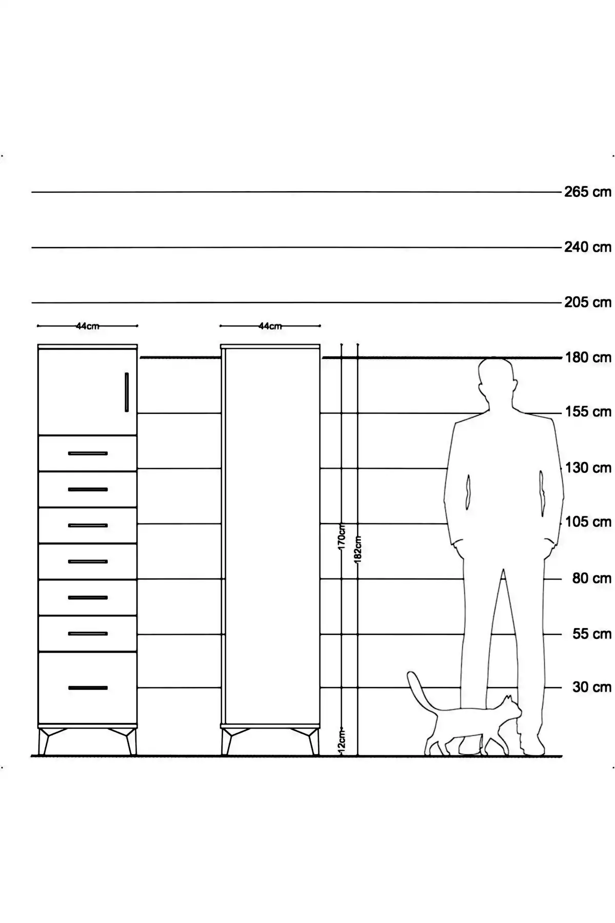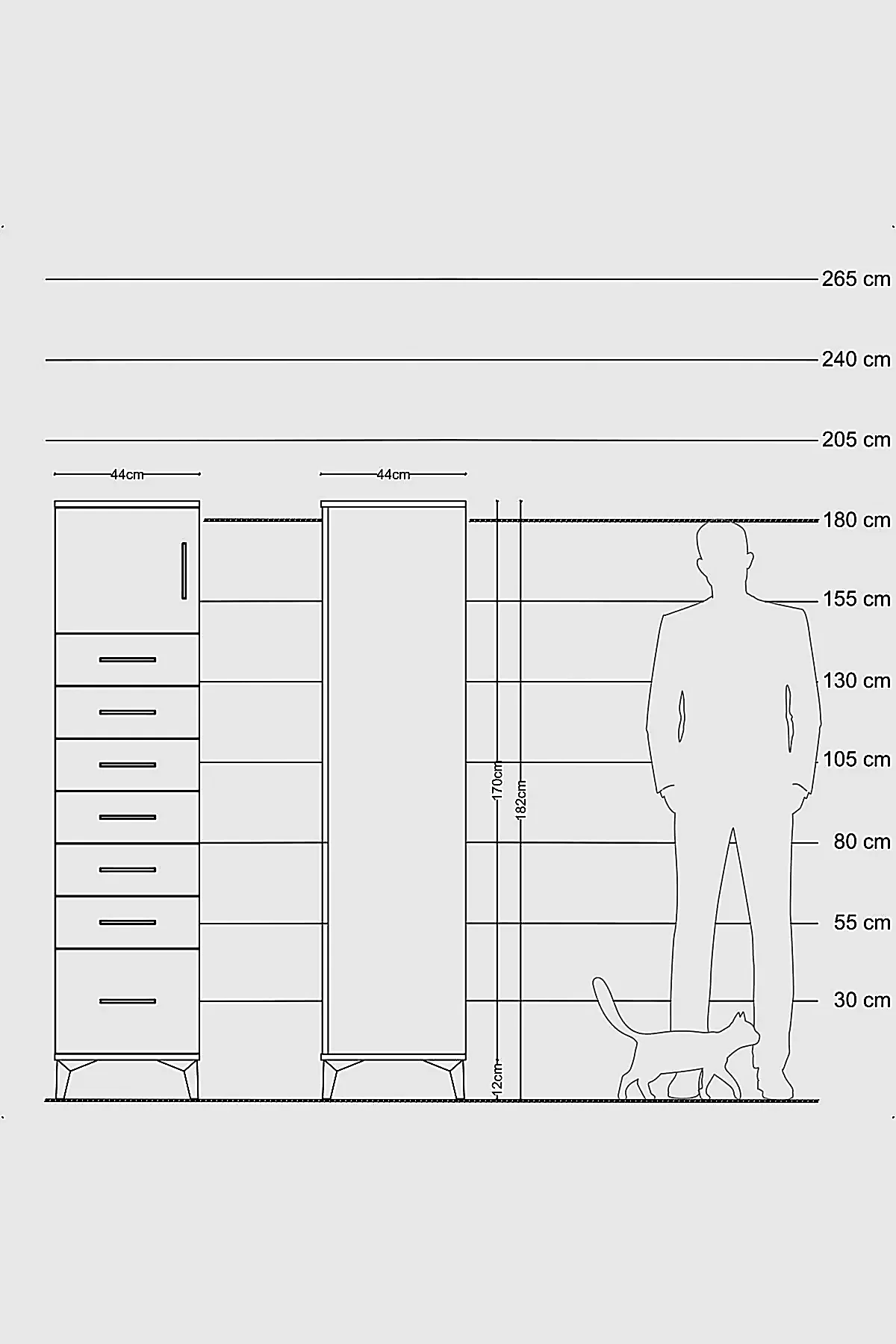 📌 Hyperion Dolap Tek Raflı 7 Çekmeceli Tek Kapaklı 44x44x182
