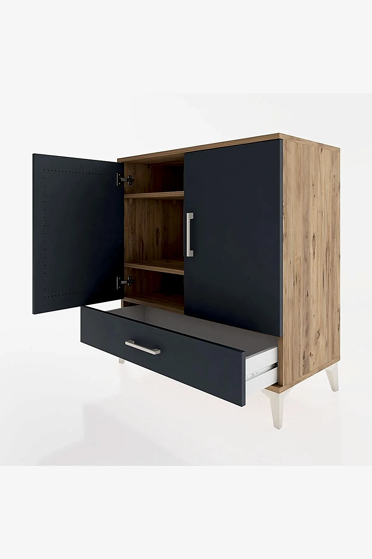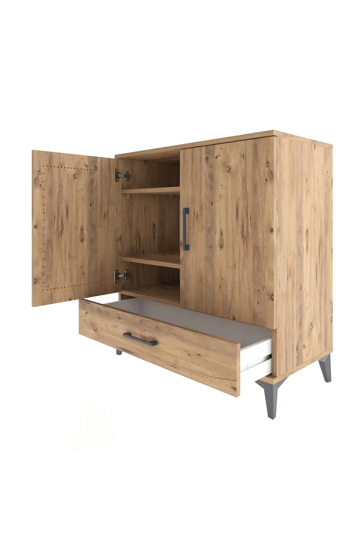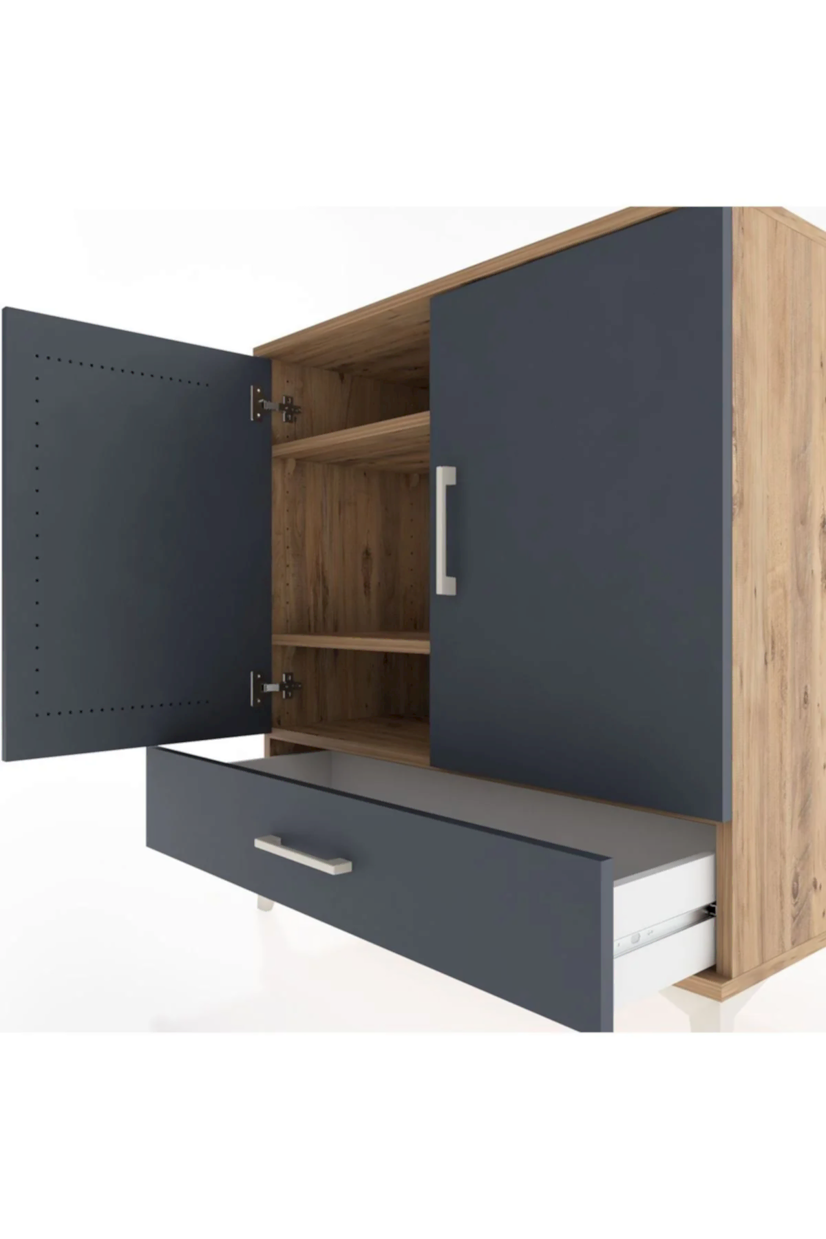 📌 Hyperion Şifonyer 3 Raflı Tek Çekmeceli 2 Kapaklı 88x44x96