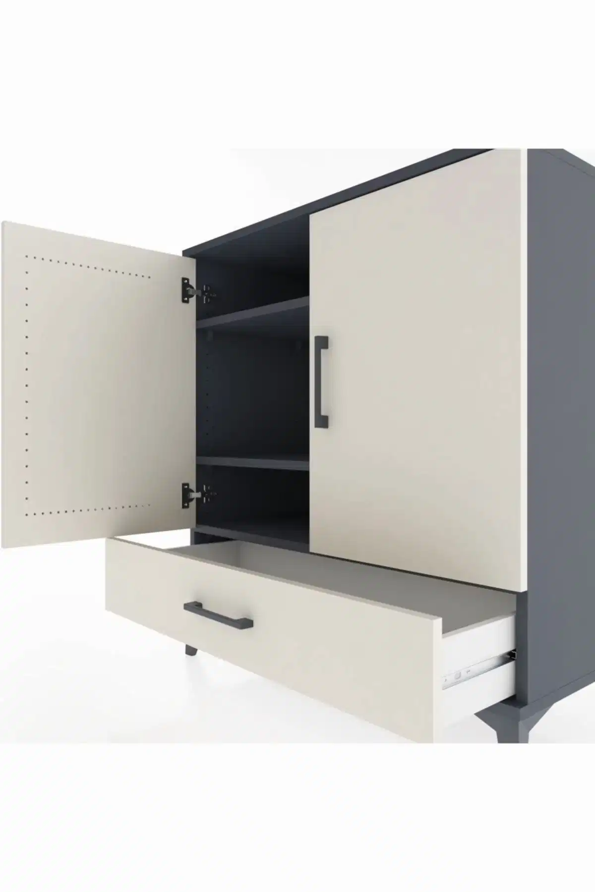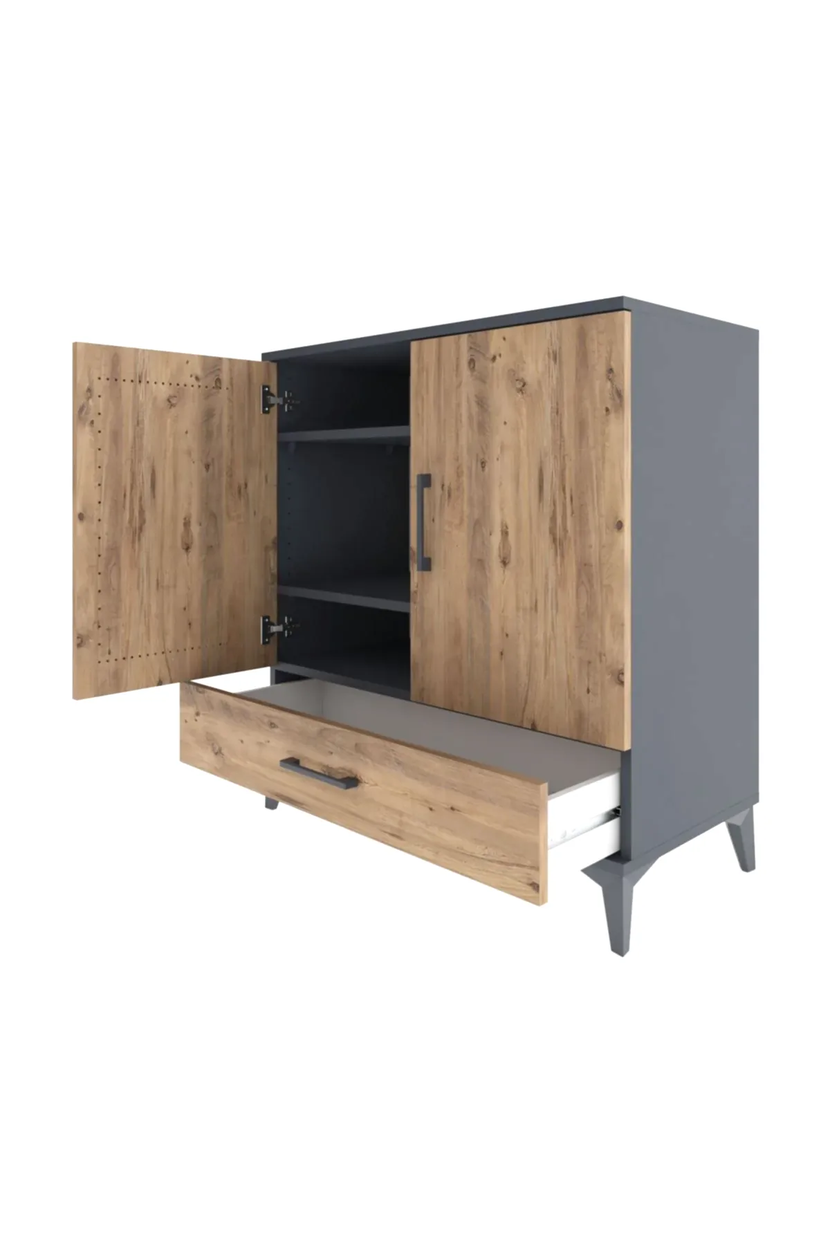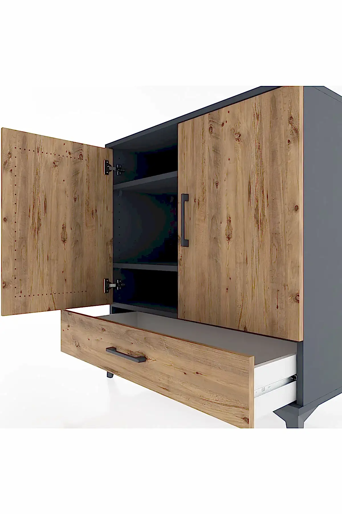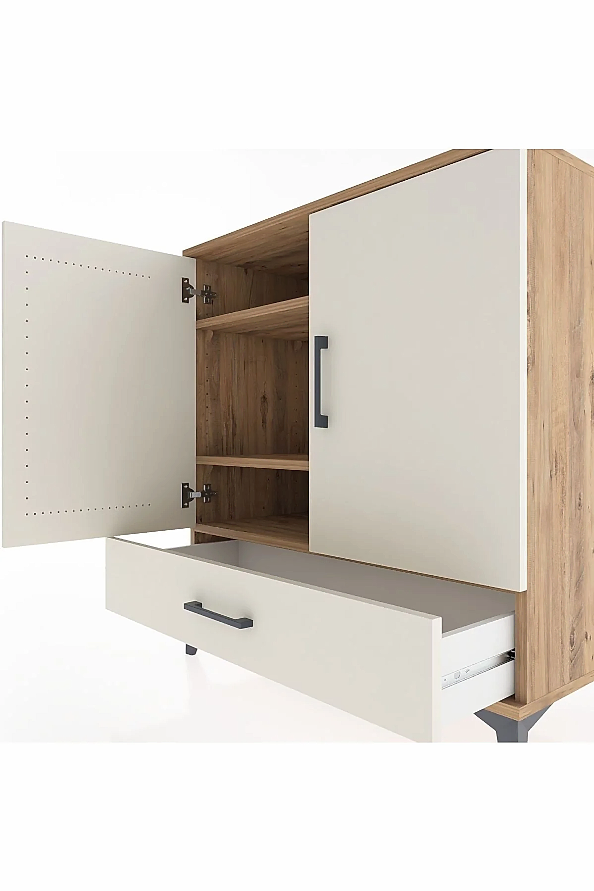 📌 Hyperion Şifonyer 3 Raflı Tek Çekmeceli 2 Kapaklı 88x44x96