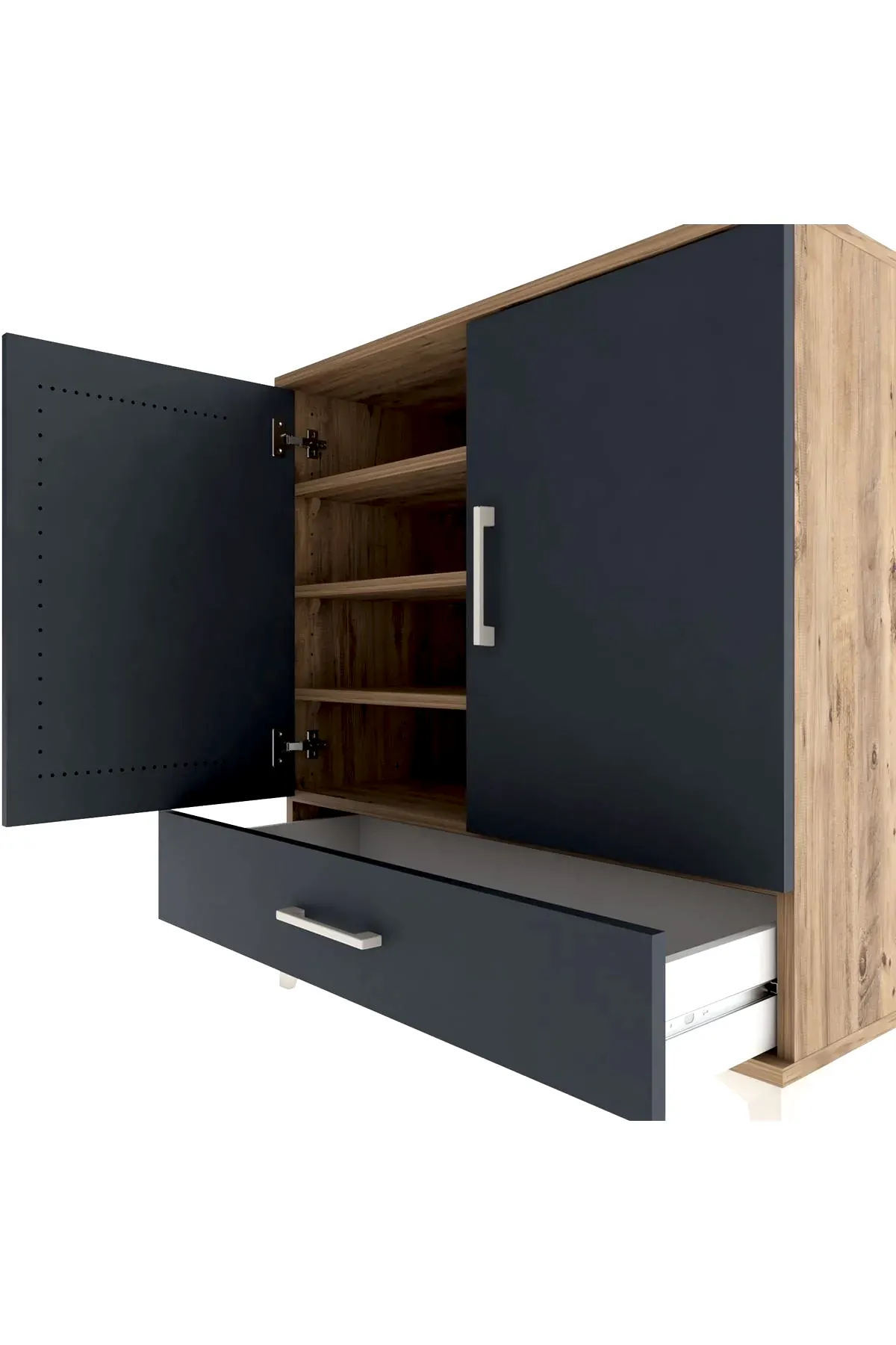 📌 Hyperion Şifonyer 4 Raflı Tek Çekmeceli 2 Kapaklı 88x44x96