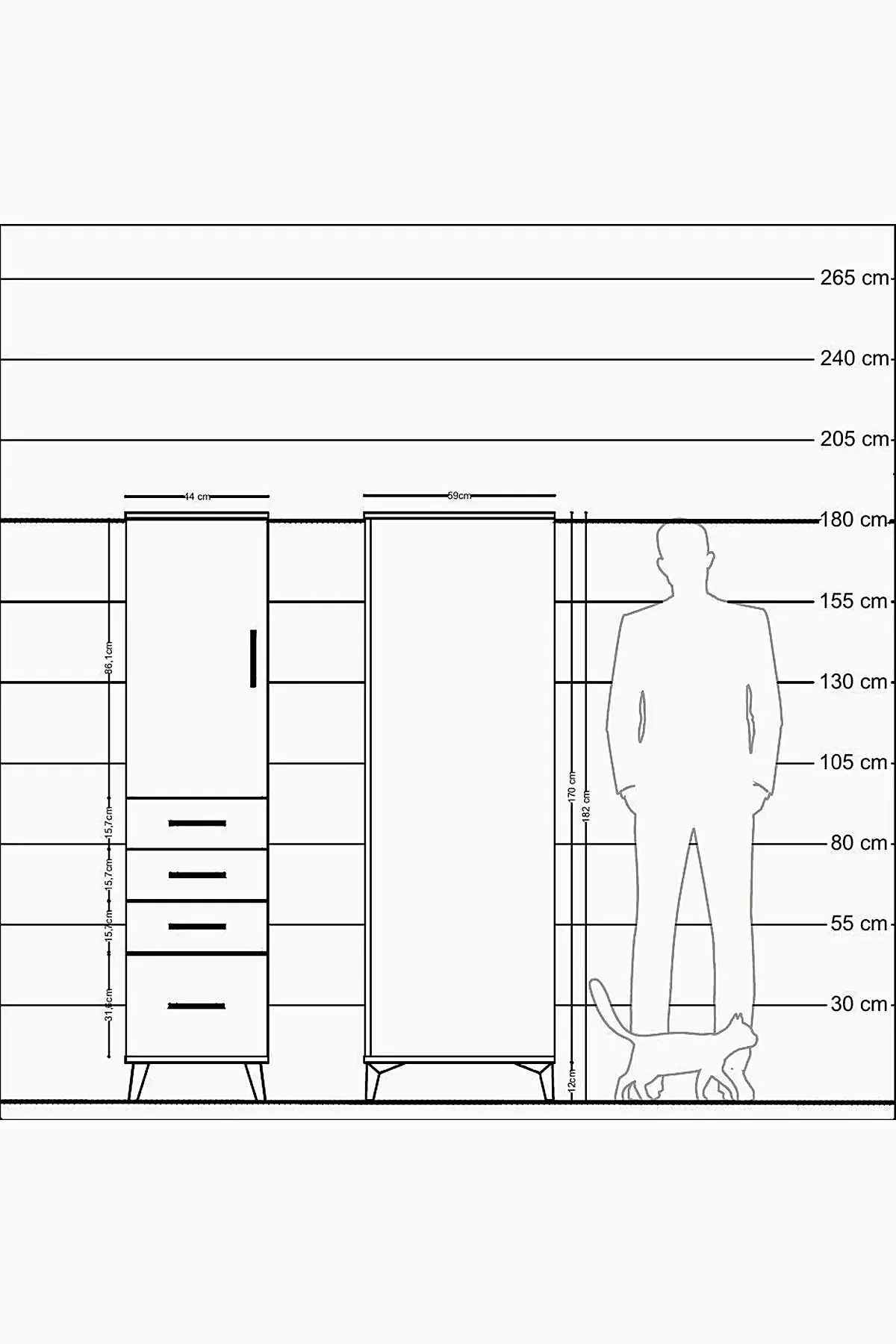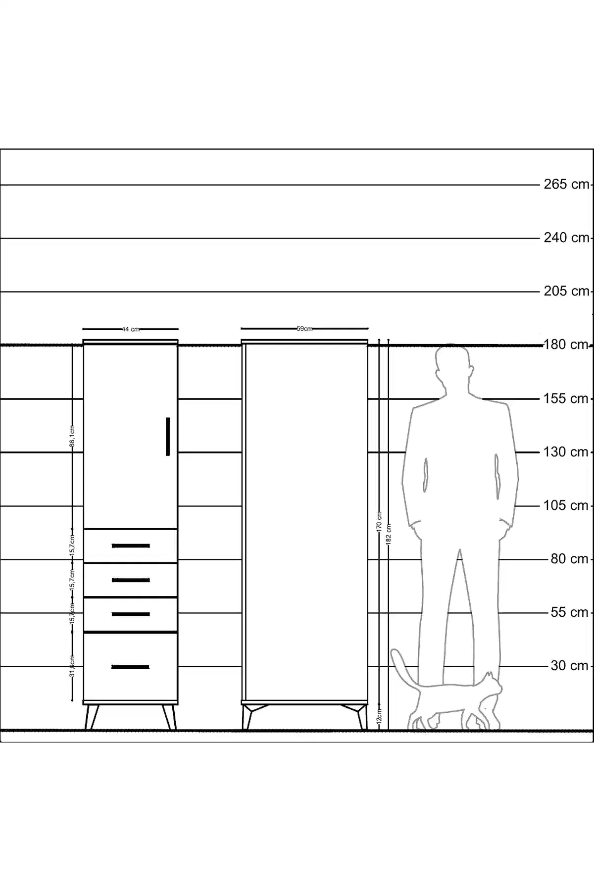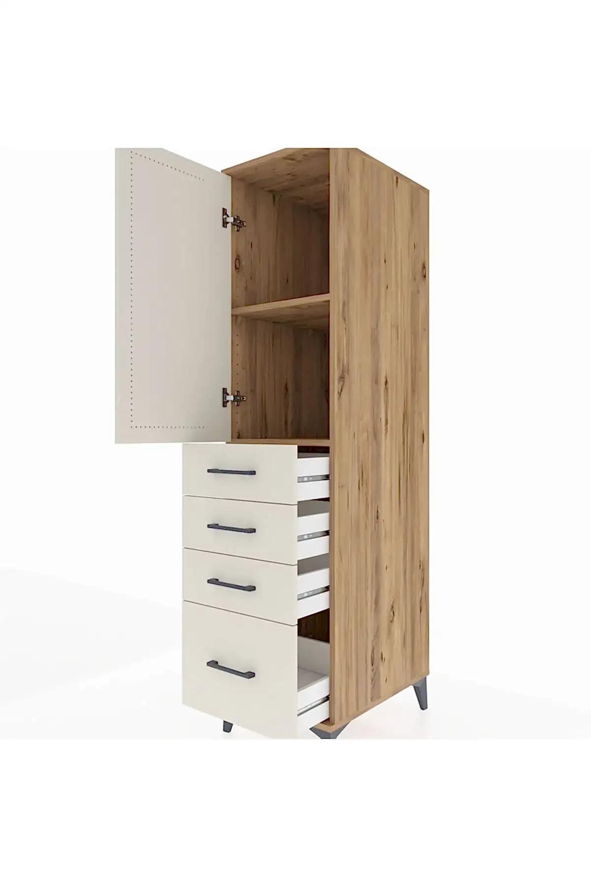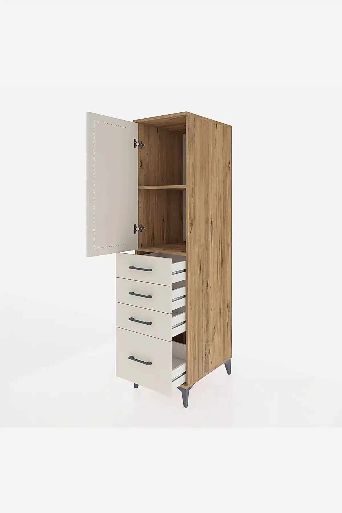 📌 Kronos Dolap 2 Raflı 4 Çekmeceli Tek Kapaklı 44x59x182